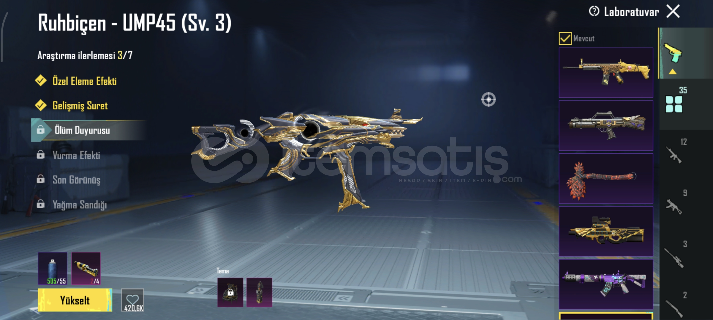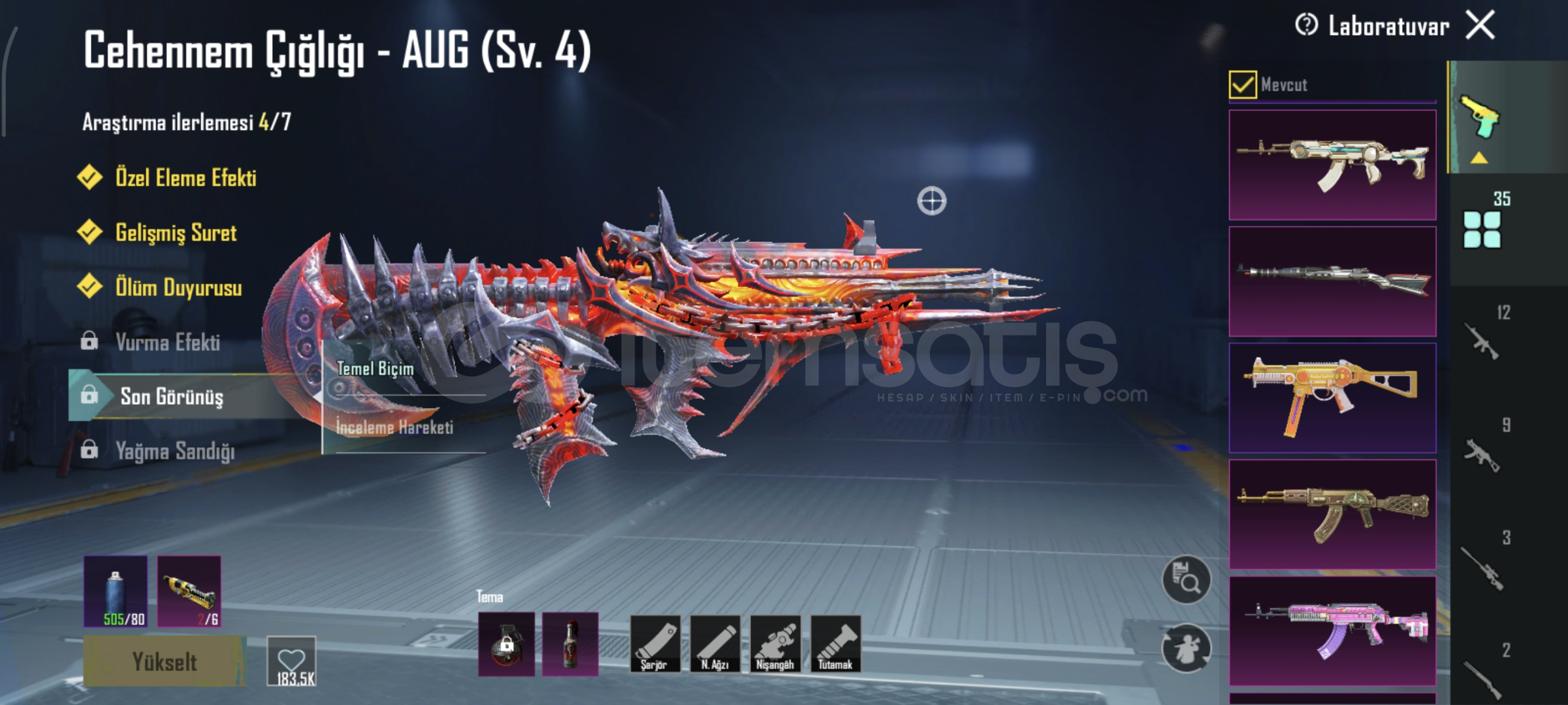 98 DESTANSI36 Tane Yükseltilebilir SilahYakan Kükreme M4 (5 seviye)Cehennem Çığlığı AUG (4 seviye)Ruh Biçen UMP (3 seviye)Kod Kırıcı AKM (4 seviye)Aşk Konçertosu M7 (4 seviye)Küçük Midili M7 (3 Seviye)2 TANE X-SUITFİRAVUN (2 Seviye)ANUKHRA (1 SEVİYE)ÖNEMLİ ÖGELERDalgıç SetiBuz Diyarı Setiİşgalci SetiNut Savaşçısı SetiMaskeli Medyum...