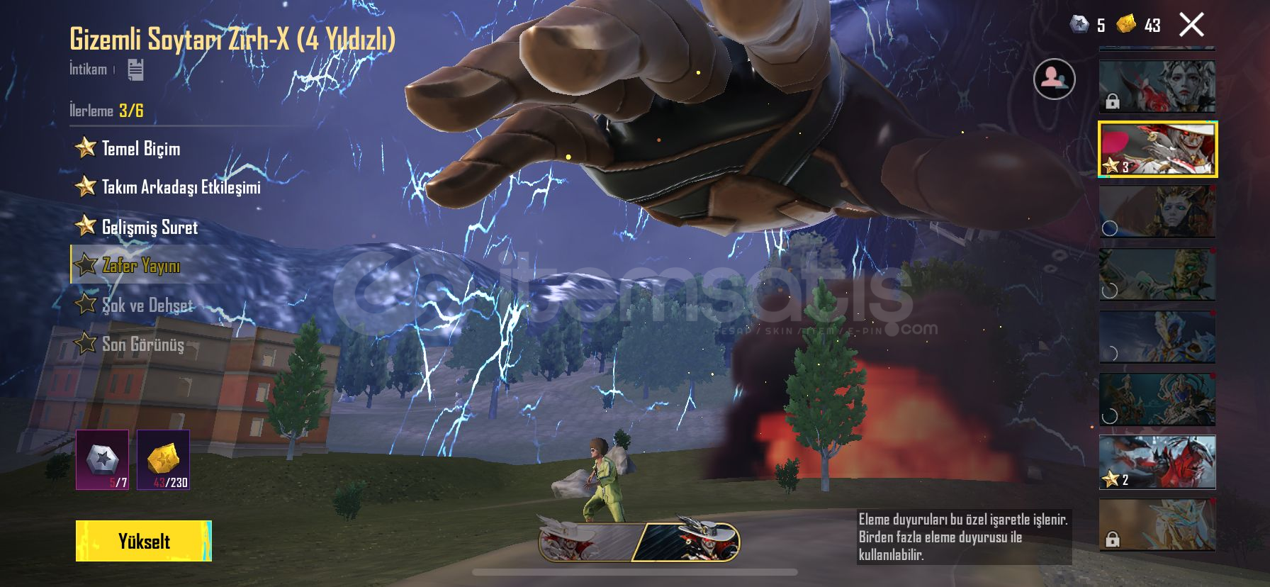 Hesap ID: 538 818 1981🔫 Yükseltilebilir SilahlarBuz Diyarı M416 – Seviye 5Gümüş Kuru M416 – Seviye 4Küçük Midilli M16A4 – Seviye 4Öldüren Nameler M24 – Seviye 3Ejder Katili Yadigâr Pala – MAX SeviyeRuhani Muhafız Uzi – MAX Seviye🛡️ X-Suit ZırhlarGizemli Soytarı Zırh X – Seviye 3Kanlı Kuzgun Zırh X – Seviye 2✨ Özel Destansı...