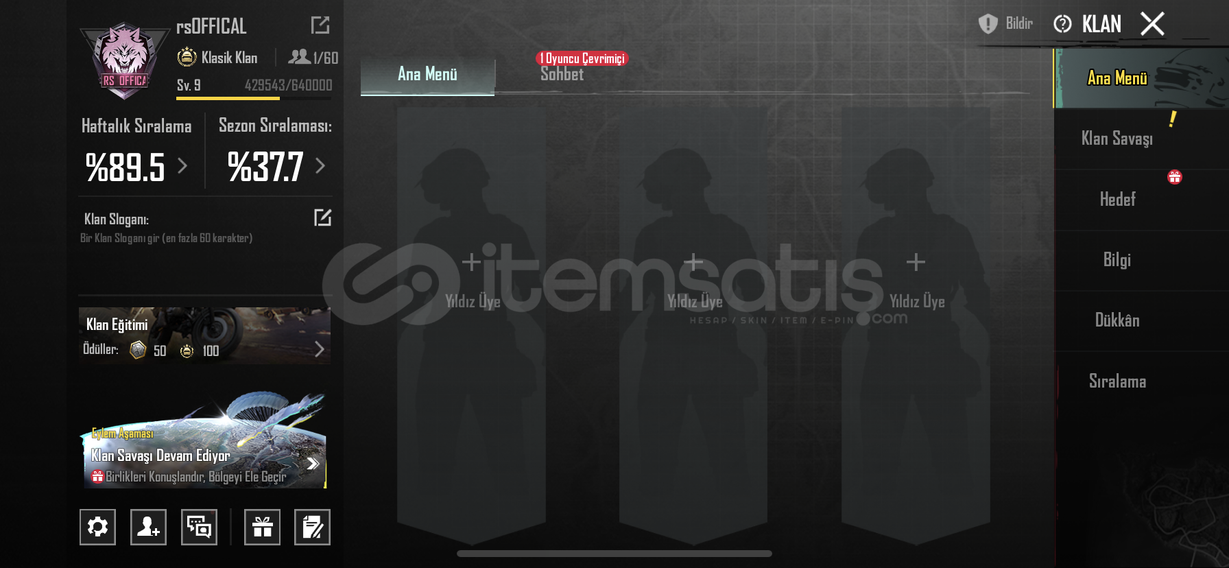 9.8 SEVİYE KLAN İSİM DEĞİŞTİRME AKTİF 5-10 DK DA TESLİM EDİLİR