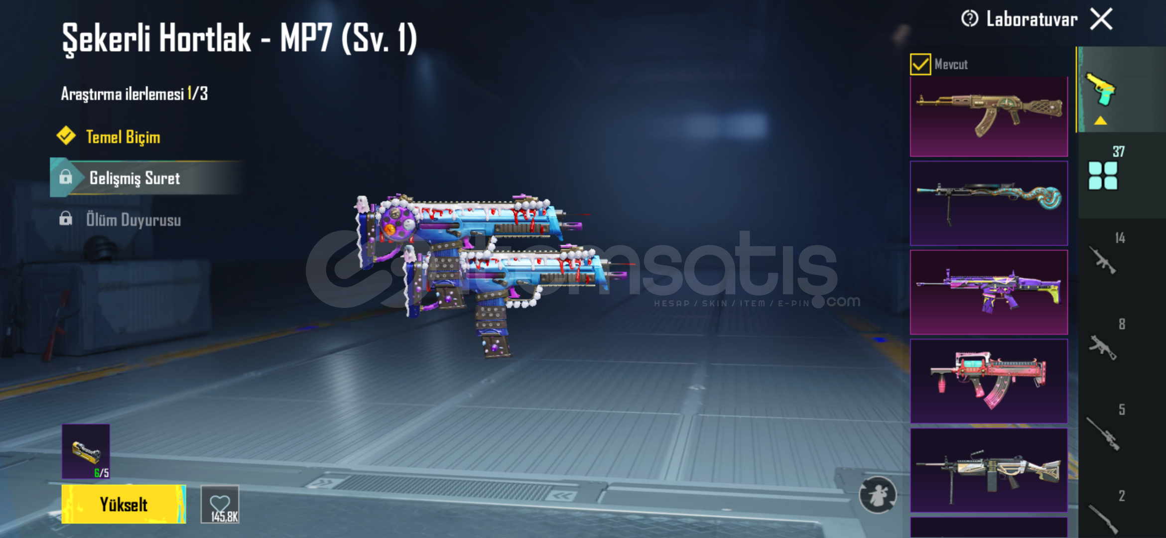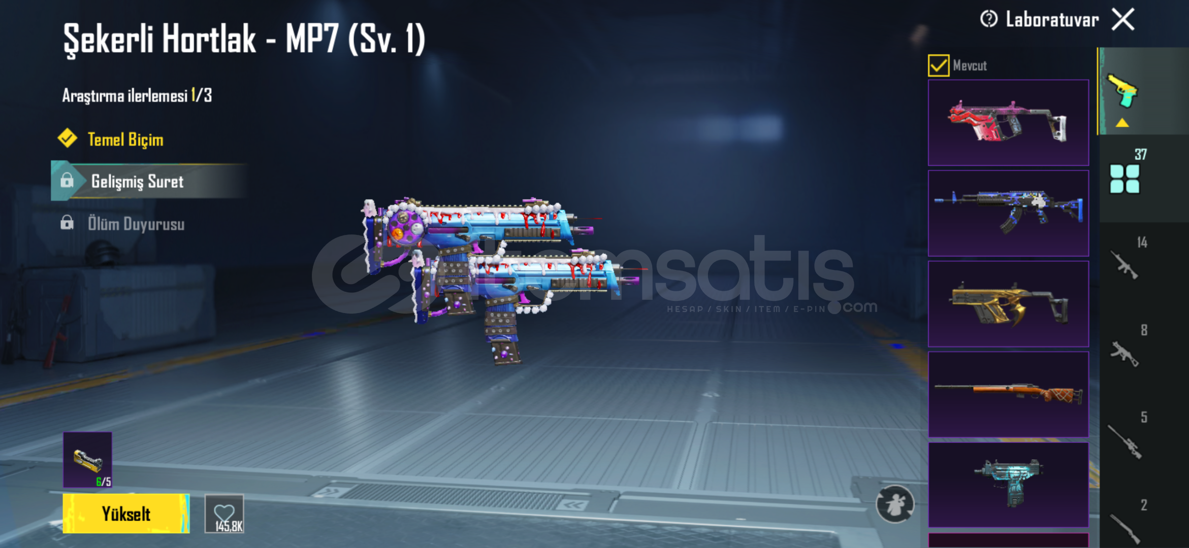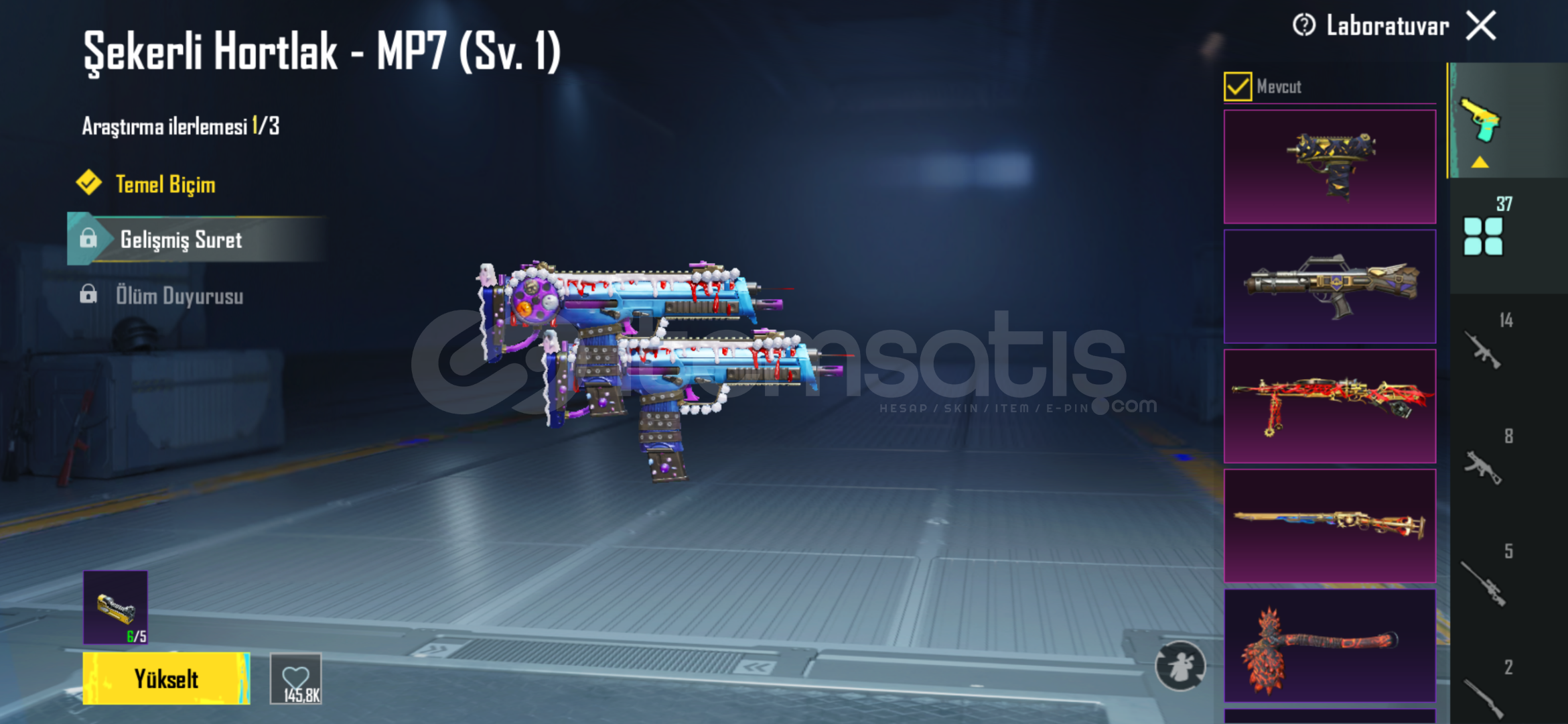 hesap içerisinde isim değiştirme kartı mevcuttur bir çok başarım açıktır geliştirebilir silahları gücüm yettiğince geliştirdim ek olarak 4 adet materyal mevcuttur alan kişi istediği silahta kullanabilir.