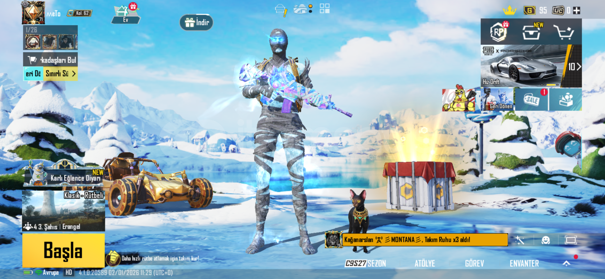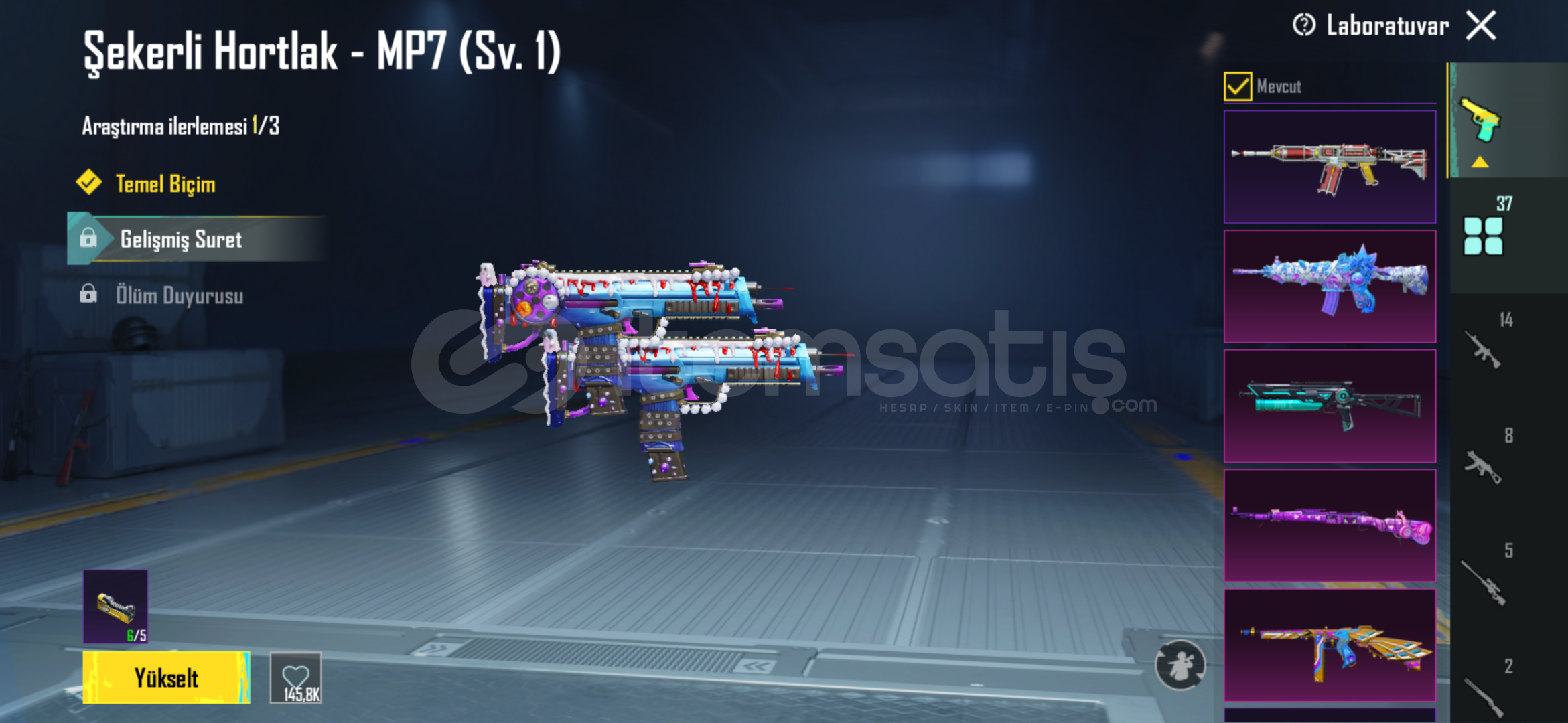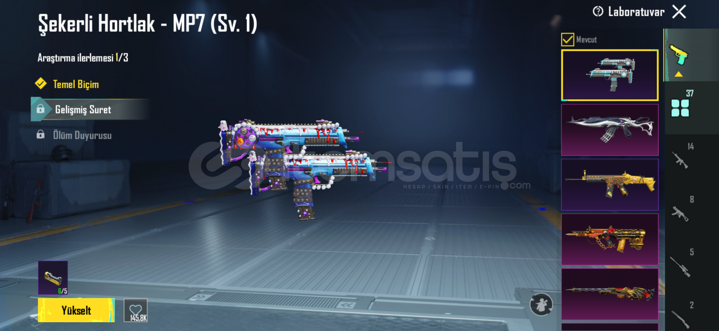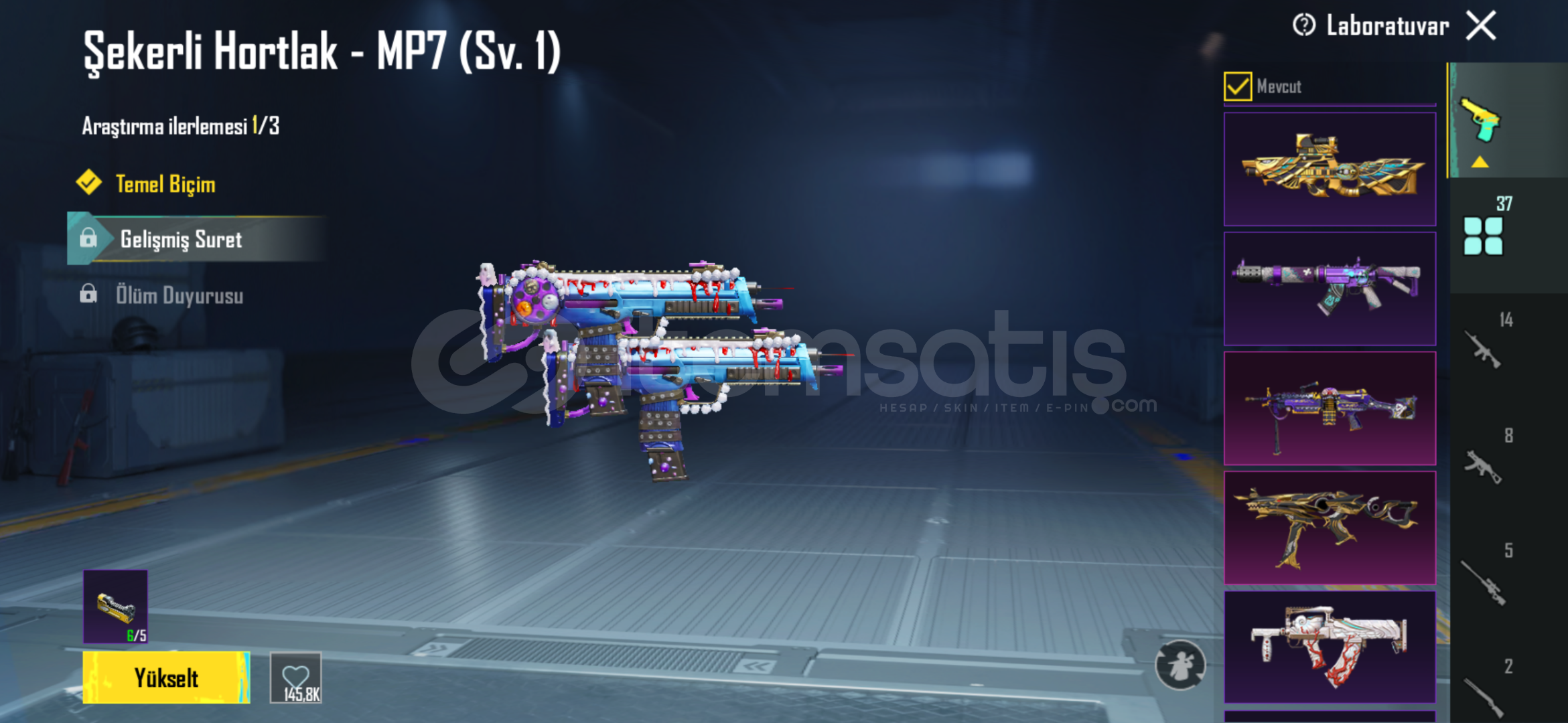 hesap içerisinde isim değiştirme kartı mevcuttur bir çok başarım açıktır geliştirebilir silahları gücüm yettiğince geliştirdim ek olarak 4 adet materyal mevcuttur alan kişi istediği silahta kullanabilir.