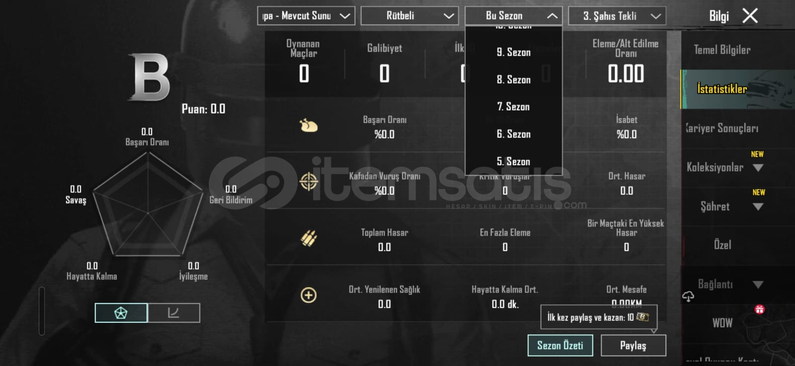 Hesap Sezon 5 Hesabıdır -70 Destansı-10 Yükseltilebilir Silah-Kombin Yapmak için Kıyafet Seçeneği Bol-7 AraçDahası Vardır CİDDİ ALICILAR İLETİŞİME GEÇSİN
