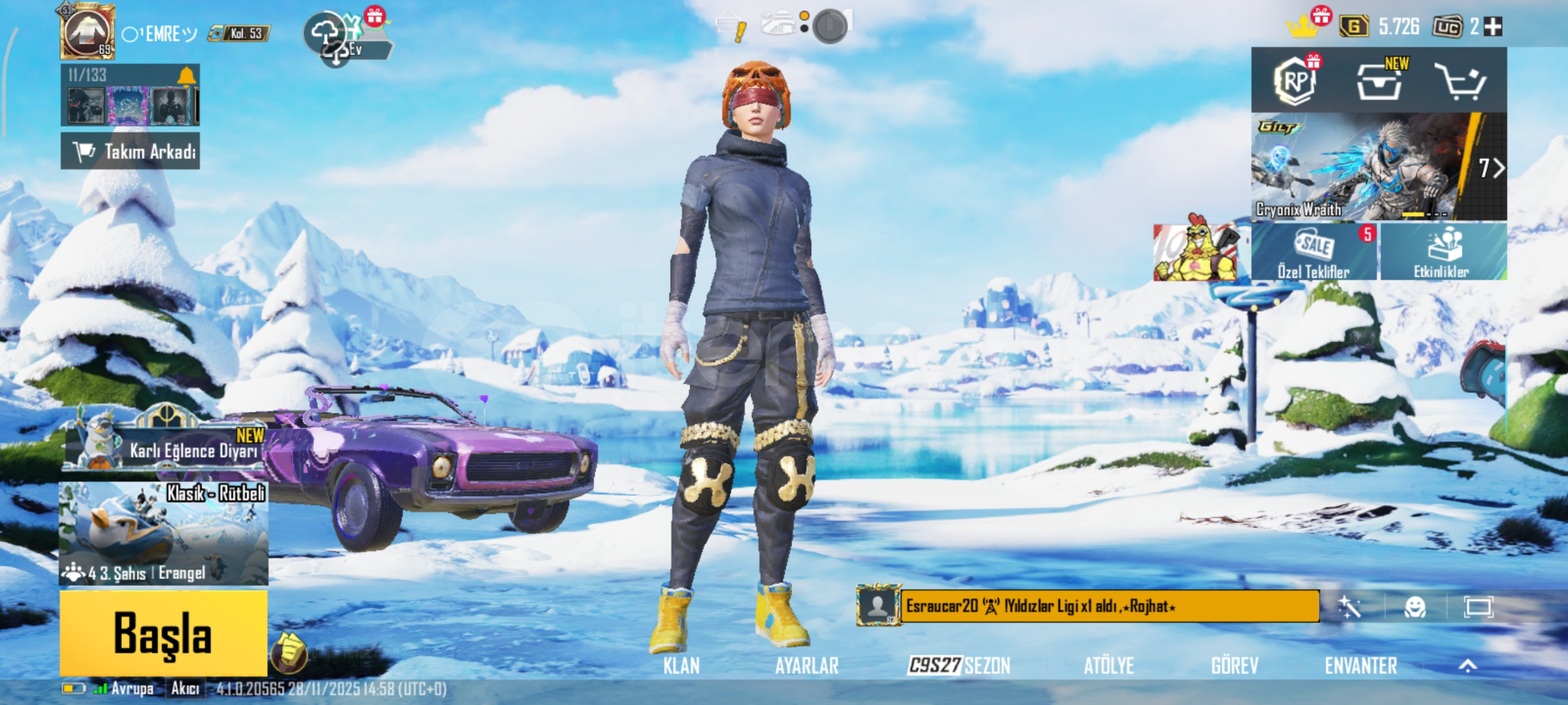 Hesabımı aldım buz diyarı var gerçekten hesapta