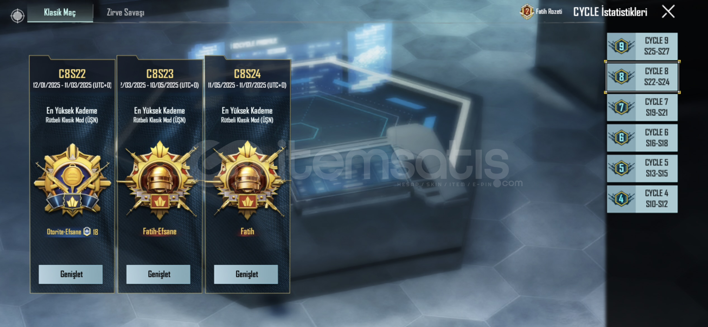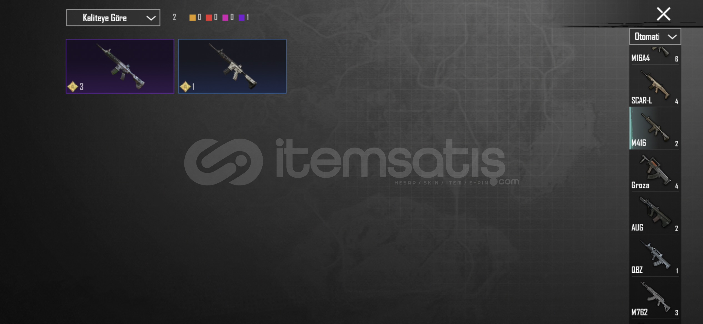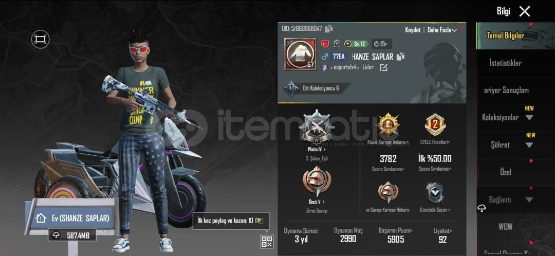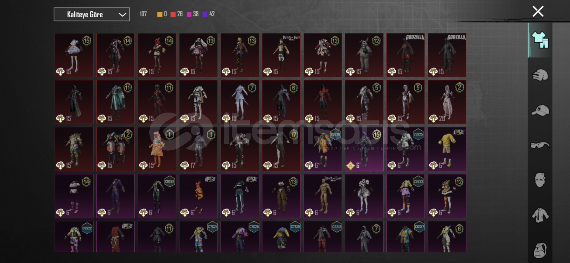 15 yükseltilebilir silah42 destansı126 tane silah deseniHesabımda kombinlik eşyalar vardırölü bağ yoktur67 seviye2 kere fatih oldu