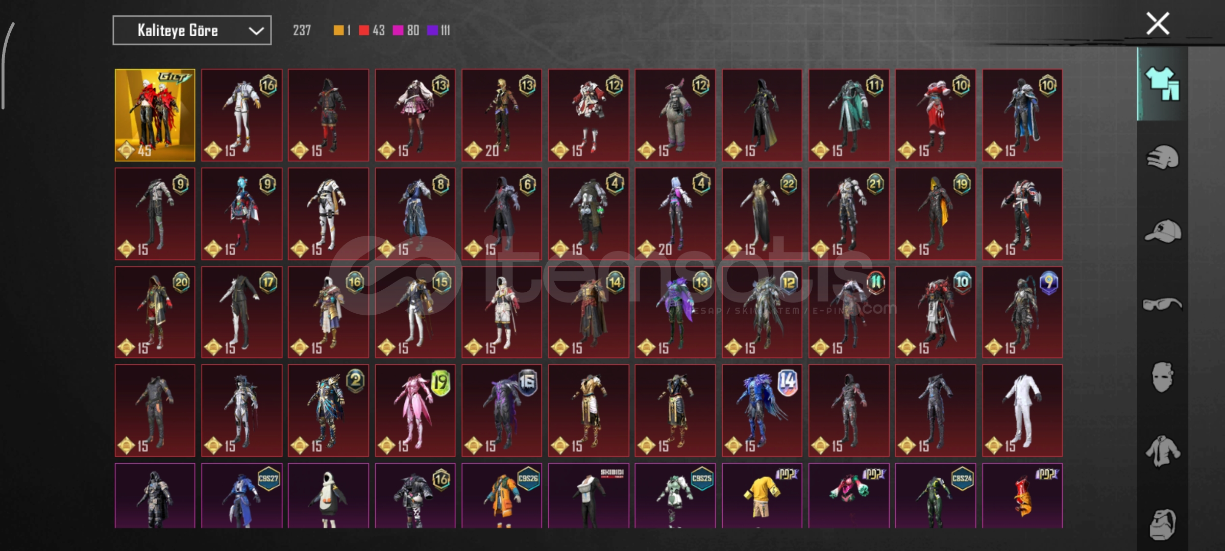Dikenli kaskDestansı gösterişDenizlerin hükümdarıFiravun çantaNihai setDolu kombinS2 maskeMumya UziS12kİSTEYENE DETAYLI VİDEO ATILIRPazarlık yapalırGörsel dışı kuzgun Groza var