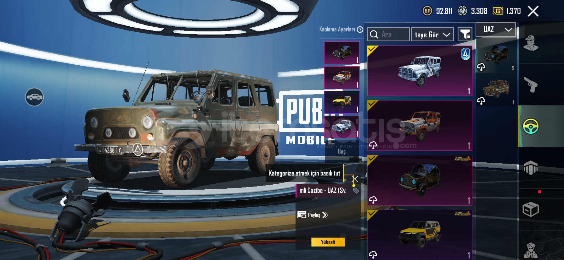 Acil satılık pazarlık mevcut PUBG hesabı