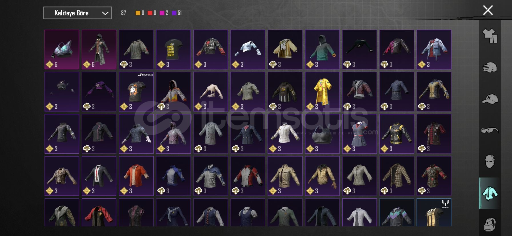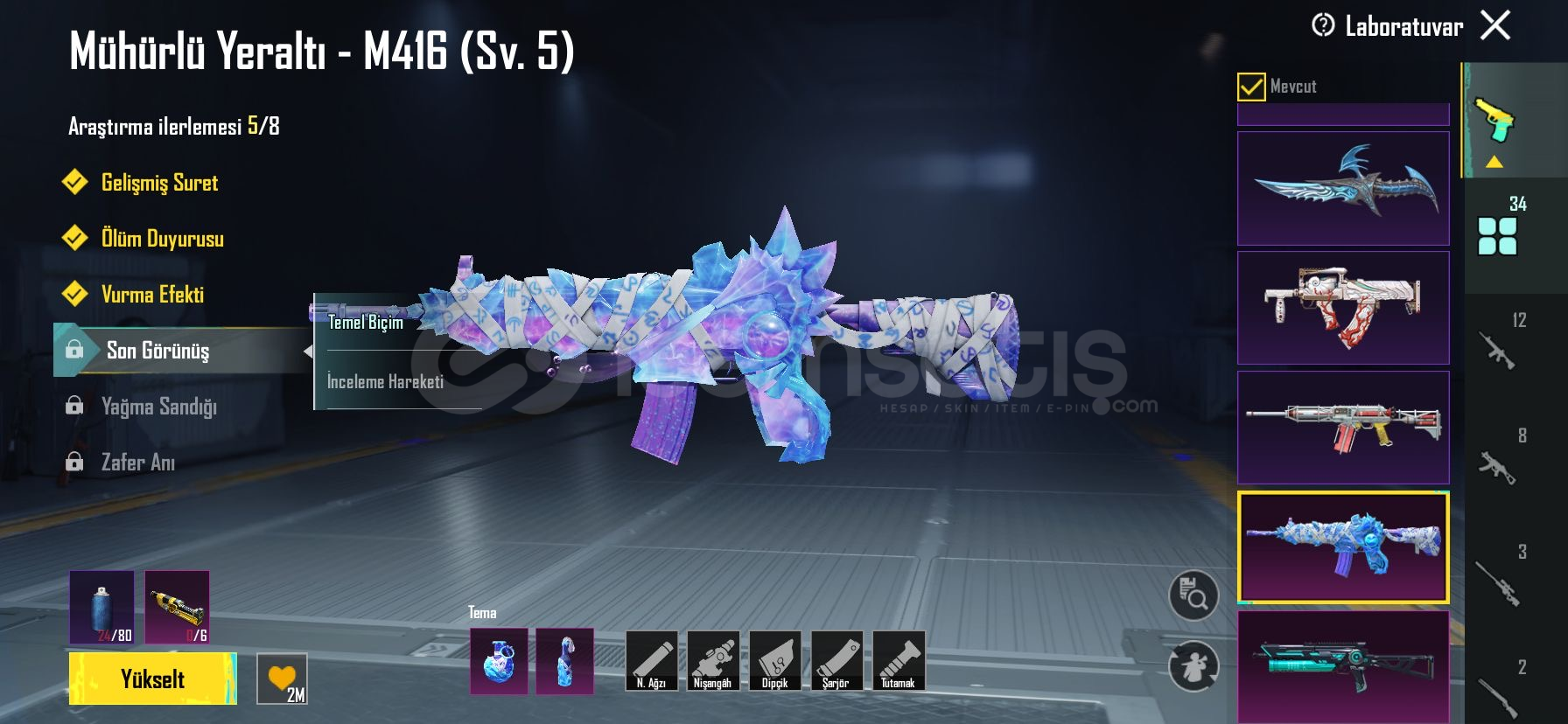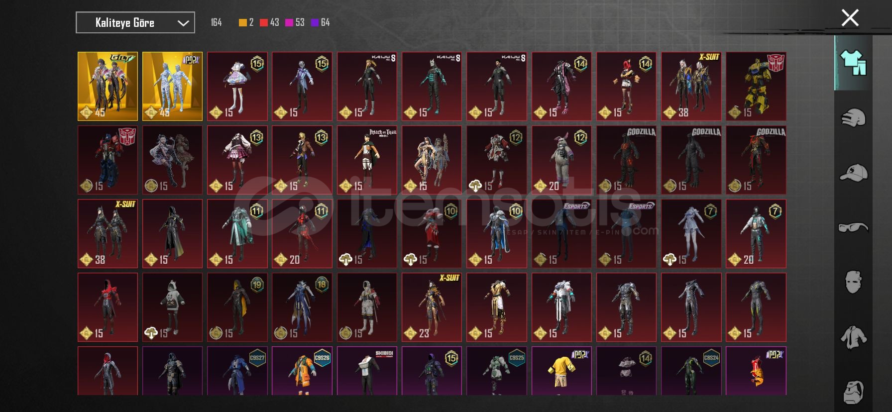 Maskara - Max svMühürlü yerlaltı - m416 5 sv Yakan kükreme m4 - 6 seviye Ruhbiçen ump - 4 seviyeZihirli cehennem uzi - 4 svAltın pençe P90 - 4 seviyeGece gladyötörü bizon - 4 seviye Şekerli baston thampson - 4 seviye Bitlik ump - 4 seviyeKüçük Midilli m762 - 4 seviyeKahramanlık ağıdı - AWM 1 sv2 tane lotus spor araba S5 saçı varKadın Firavun 1svAnukhra 2s...