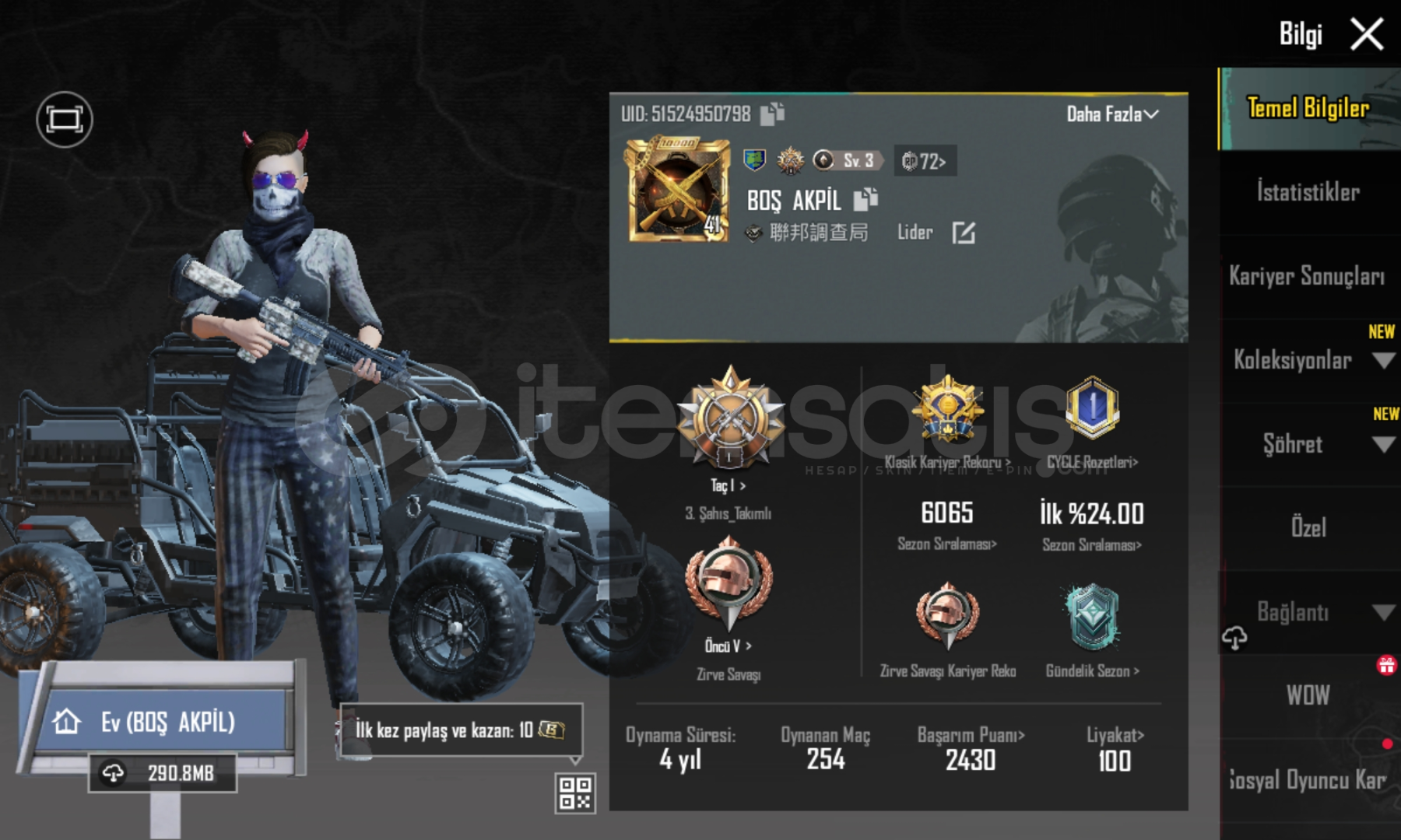 SKINLI YÜCELİK 2 HESAP(FİYATTA YARDIMCI OLUNUR)
