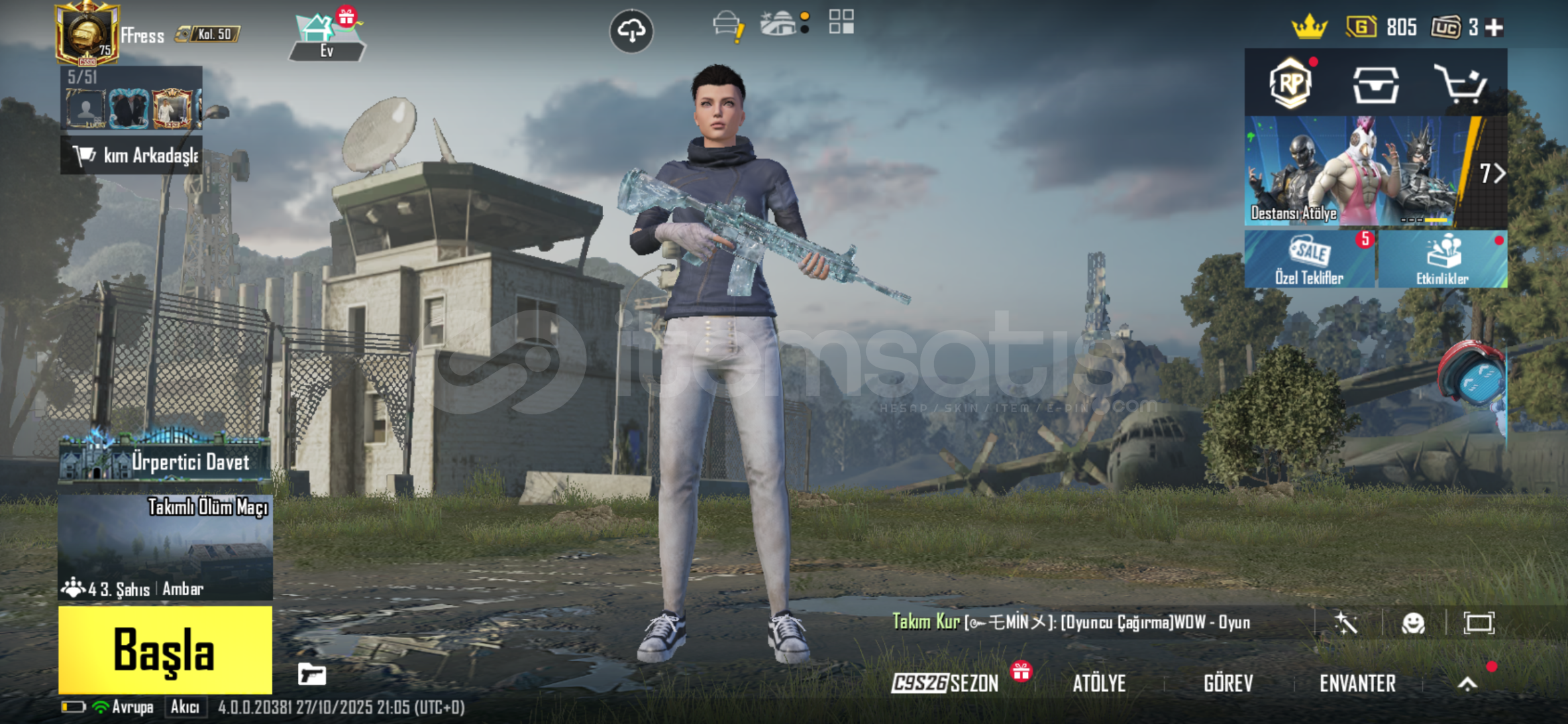 Hesap benim kendi mainimdirbağlar temizdir telefon no, eposta mevcutturFatih hesabıdır kombinlikdir.Kısa süre için indirimli fiyatını koydumelime acil para lazım oyunu bıraktımalan kişiye şimdiden hayırlı olsun