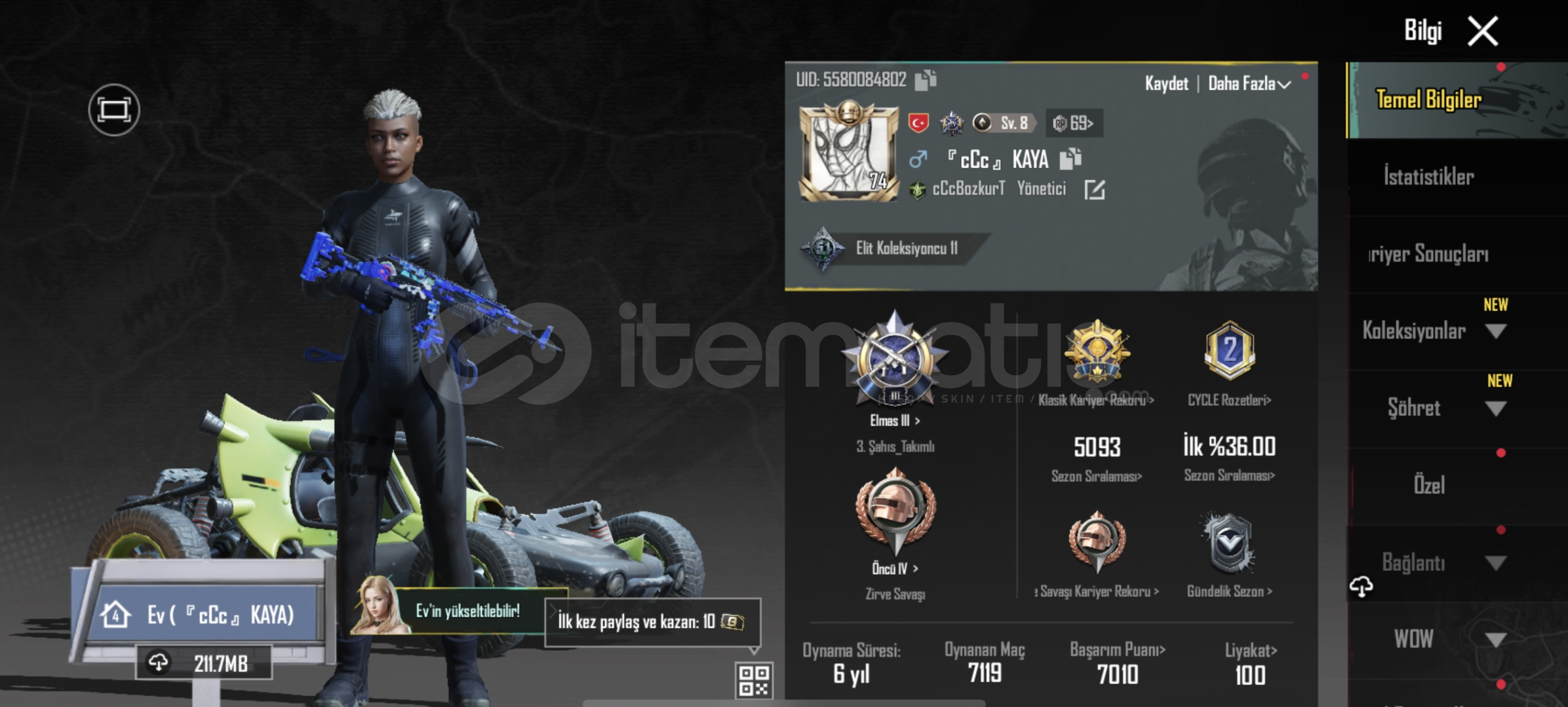 Tüm Bilgiler değişirİçindekiler:As OtoritesiHer silah da hemen hemen skin vardır1 Uaz 2 Dacia 2 Motor 6 Buggy 1 tekne skinleri vardırSaçDalgıç SetiGodzilla m4Godzilla groza (yükseltilebilir)Buz Diyarı ElbisesiBuz Diyarı Kaskı14 yükseltilebilir silah50k'ya yakın popülerlikBir çok set ve skin44 destansı322 Epic430 Destansı 51 Koleksiyon seviyesiDetaylı video atılır