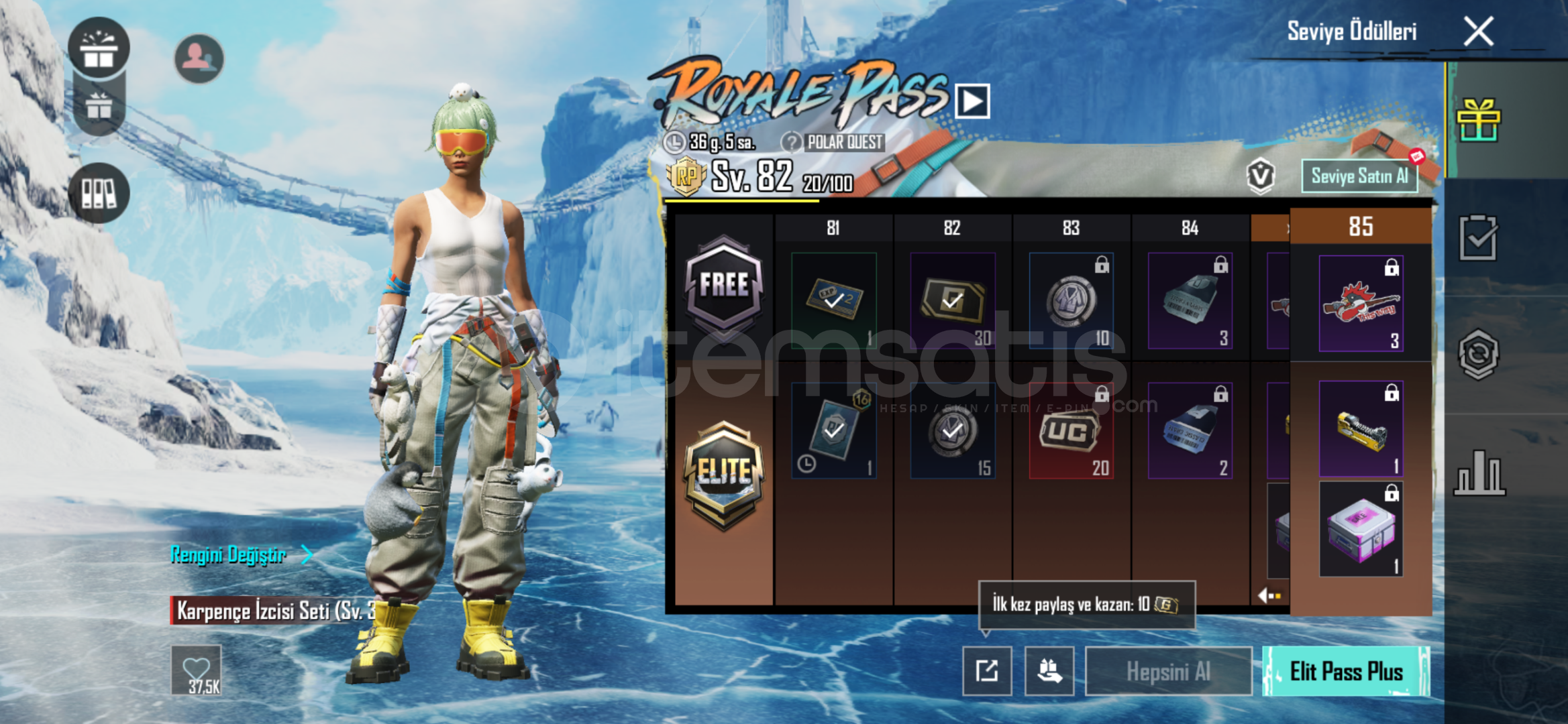 Ananas fulldur ump 2 sv ve 8 parça mataryel var 3 level yapılmasına az kaldı.Pop destansı seti var hesap başlangıç hesabıdır 36 Level royal pass açıktır. 2Sezon rp açılmıştır bu hesapta geri ödeme yoktur tek bağ twiter.İsim yenileme kartı vardır. Kademe taç 1