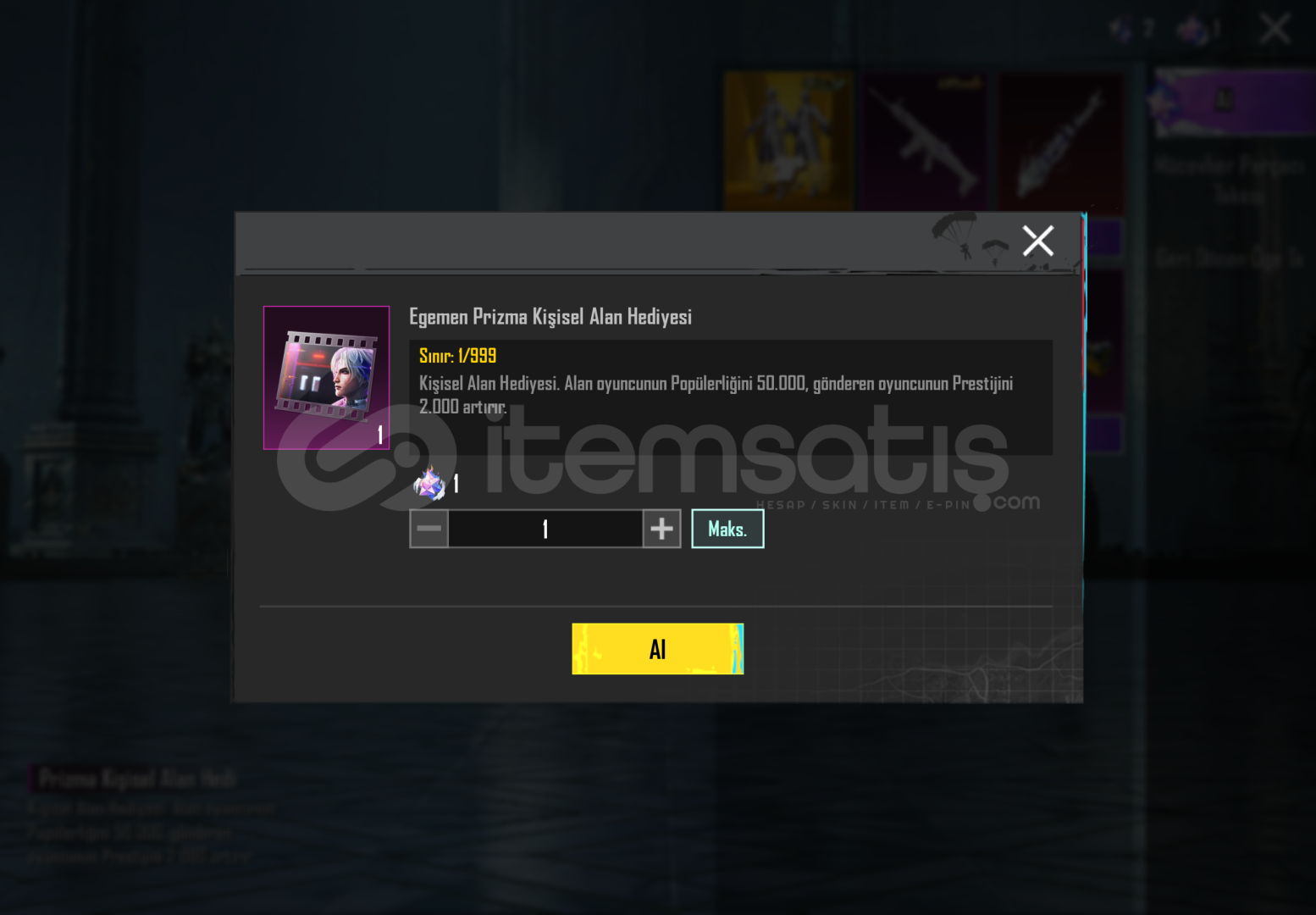 ✅Egemen Prizma Animasyonlu Kişisel Alan Hediyesi✅İlanı Satın Aldığınız Anda Siteye Geri Dönerim (sms düşer)✅Hızlı Teslimat✅İd Numaranızı Yazmanız Yeterli✅Müşteri Memnuniyeti Bizim için Önemli