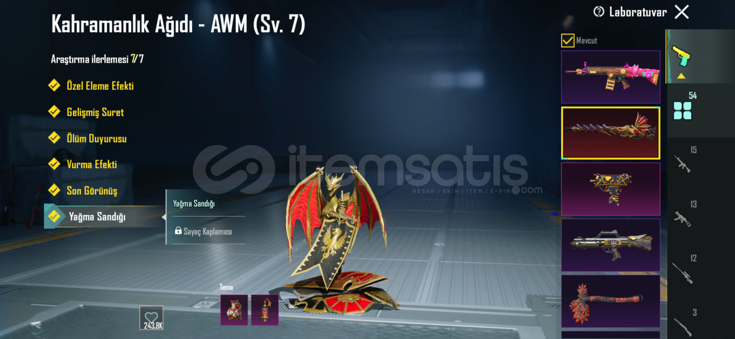 Tek bag tertemiz size teslim edilecektir. Al sat yapmiyorum hesabin sahibi benim kesinlikle sorun cikmaz. Dolu dolu hesap. Ilan videosu : https://youtu.be/b-bgddMgZOs?si=KDlKJBGO0g5AcvxU4 Tane X Suit Anakhra 6 YildizAltin Firavun 2 YildizKor Alev Zirhi 2 YildizDravion YildizSari Mumya Dikenli KaskGodzilla KostumleriKahramanlik Agidi AWM - Max LvlM4 Buz - Max M4 Maskara M4 Muhurlu YeraltiArindirici AMR - 4 LvlIlham Perisi M7Zincirli Cehennem UziRuhbiçen UMPSSC Tuat...