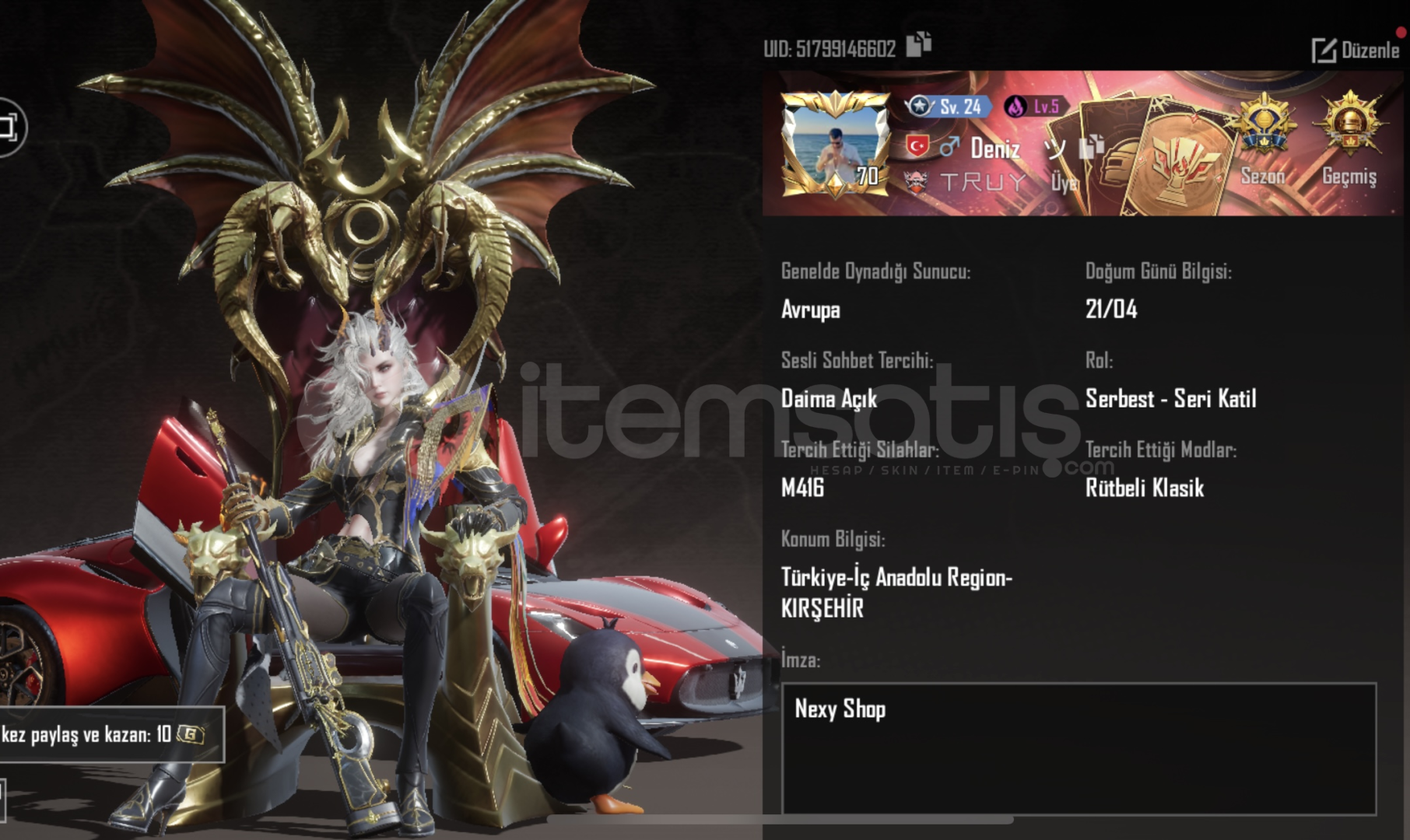 Fazla ve öz parçalarla hazırlanmış, tarzına önem veren oyuncular için özel bir hesap!