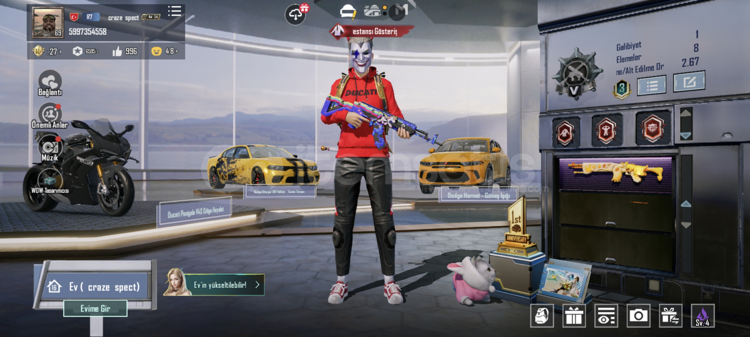 https://youtu.be/3GvzsQAKvis?si=260VXOsEn1HkTVDYHesap içindeki değerli setler;•Anukhra Xsuit(2sv. Giriş efektli)•Yırtıcı şahin(emojili)•Saha komutanı seti(emojili)•Kutsal saygınlık seti(emojili)•Çiçeklerin kraliçesi seti•Yılan suikastçi seti•Zaman seyyahı seti(emojili)•Deniz yılanı seti(emojili)•Amansız suikastçı seti(emojili)•Seri...