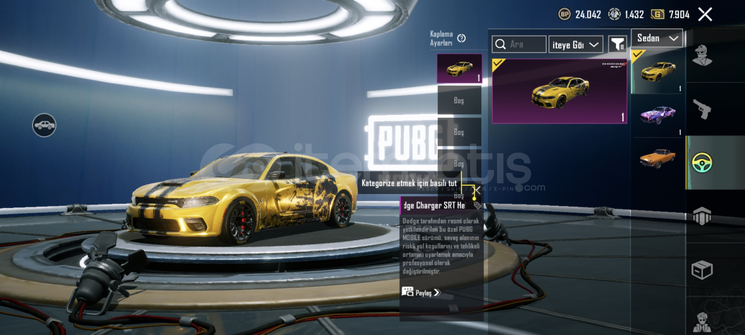 Hesap içindeki değerli setler;