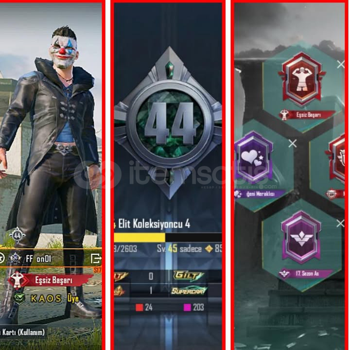 İçinde güzel itemler bulunduruyorsezon2 maske mevcutturbuz diyarı kask bulunurdaha başka başka destansı ögeler bulunur50 ye yakın silah desenihesapta ölü bağ yoktur herşey yerli yerindedirher silahta desen vardırher türlü kombin yapacak kadar kıyafet vardır