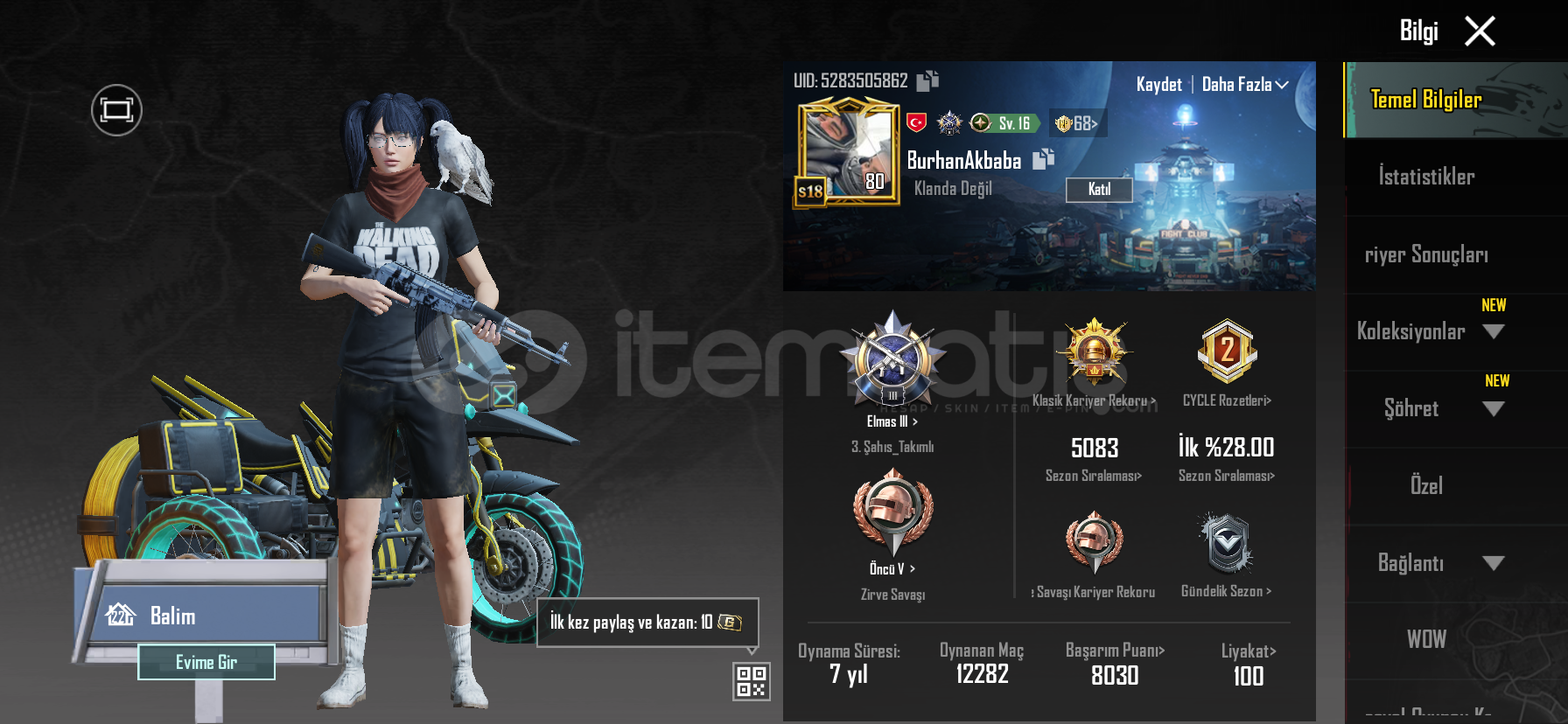 hesap uzun zamandir bendedir askere gideceğim için satmak zorundayim elimde olan Herşeyi satiyorım hesap vidyosu vardır insta burhanakbabax yazabilirsiniz https://youtu.be/fwKS9ecUNvg?feature=shared