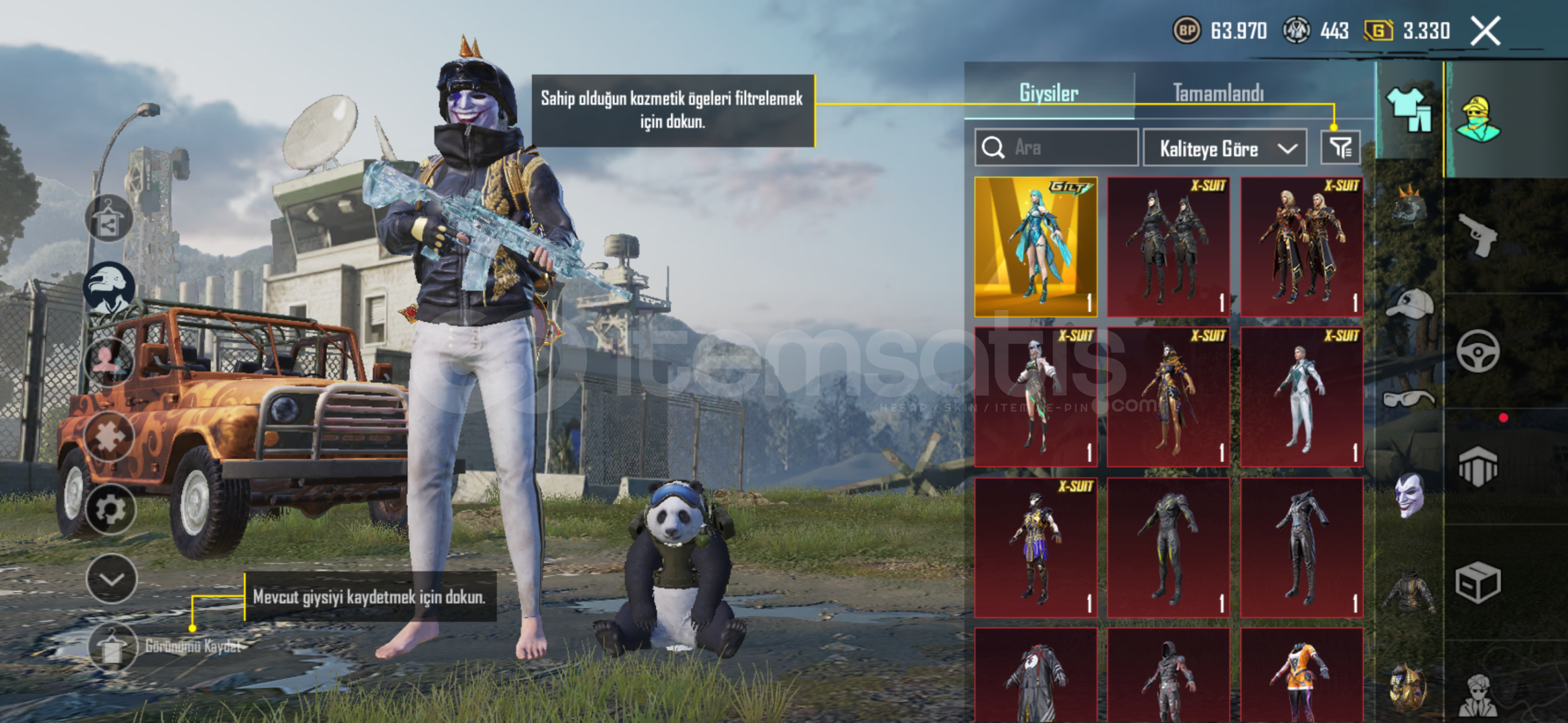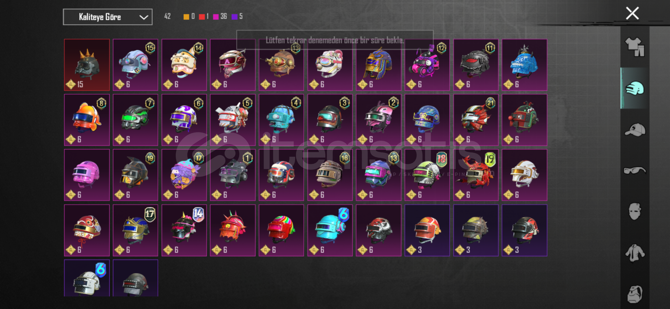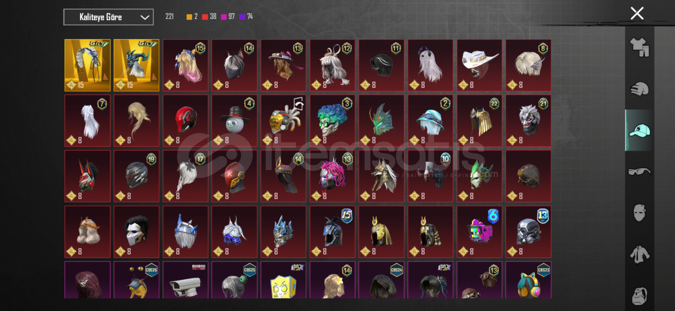 127destansı 6 tane x setDikenli kask Maskara maske Ölüm makinası Maskeli medyum Firavun çanta 52 silah 11 kil chat1 max 3 tane malzeme