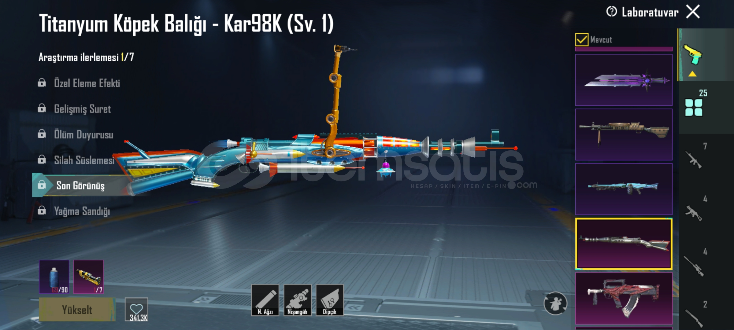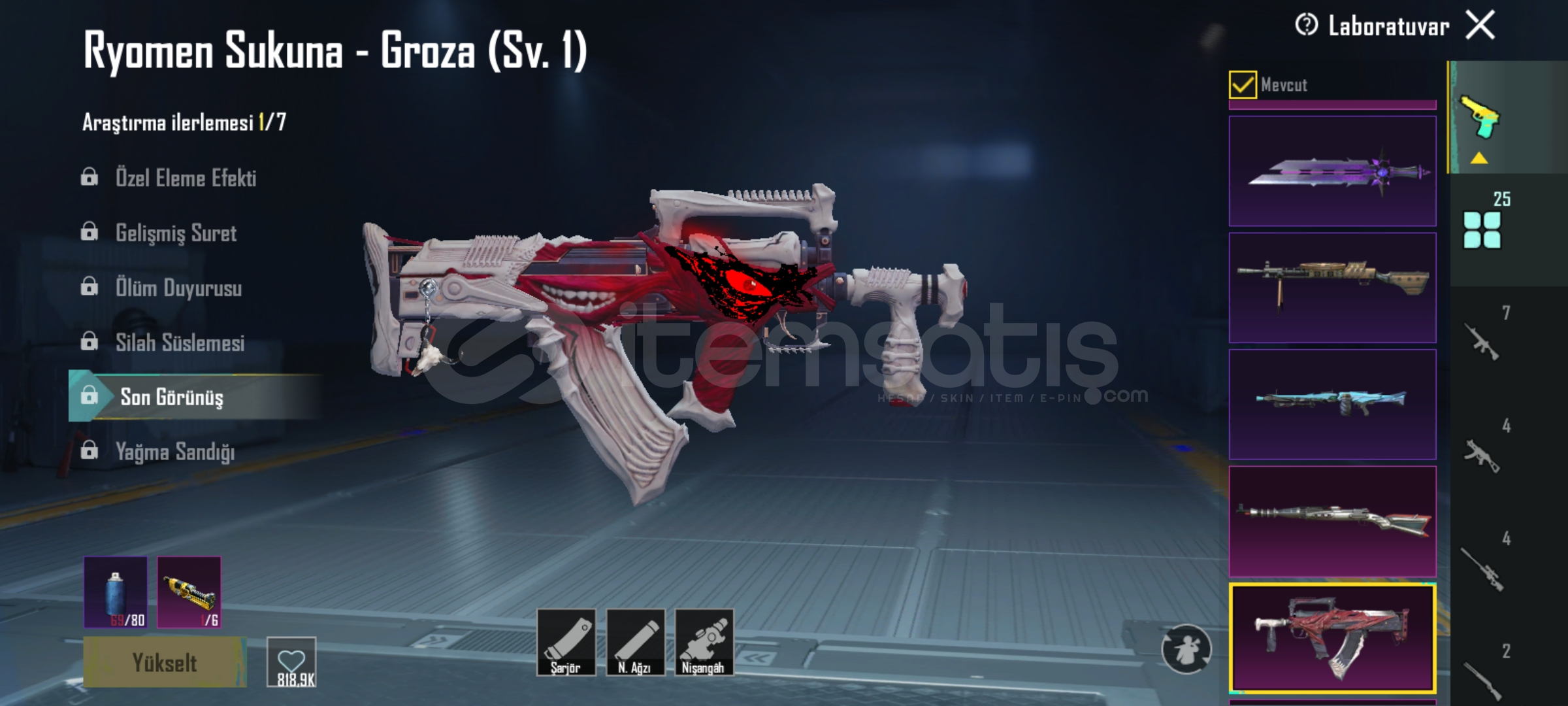 Kahramanlık Ağıdı AVM SV 1Mühürlü Yeraltı M416 SV 5Buz Diyarı M416 SV 5Titantum Köpekbalığı KAR98 SV 1Ryomen Sukuna GROZA SV 1Kızıl Leysi SKS SV 125 yükseltilebilir vardır ben benim için önemli olanları yazdım iyi günler keyifli alışverişler.