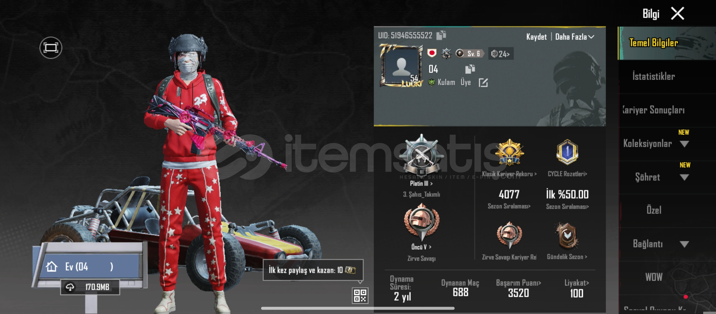 Hesapta mail bağlıdır ayrıca hesab tamamen güvenilirdir çalıntı değildir merak edebilceğiniz bazı şeyleri görsel olarak bırakıyorum bence baslangıc oyuncuları için bu fiyata güzel bir hesap şimdiden alana hayırlı olsun..