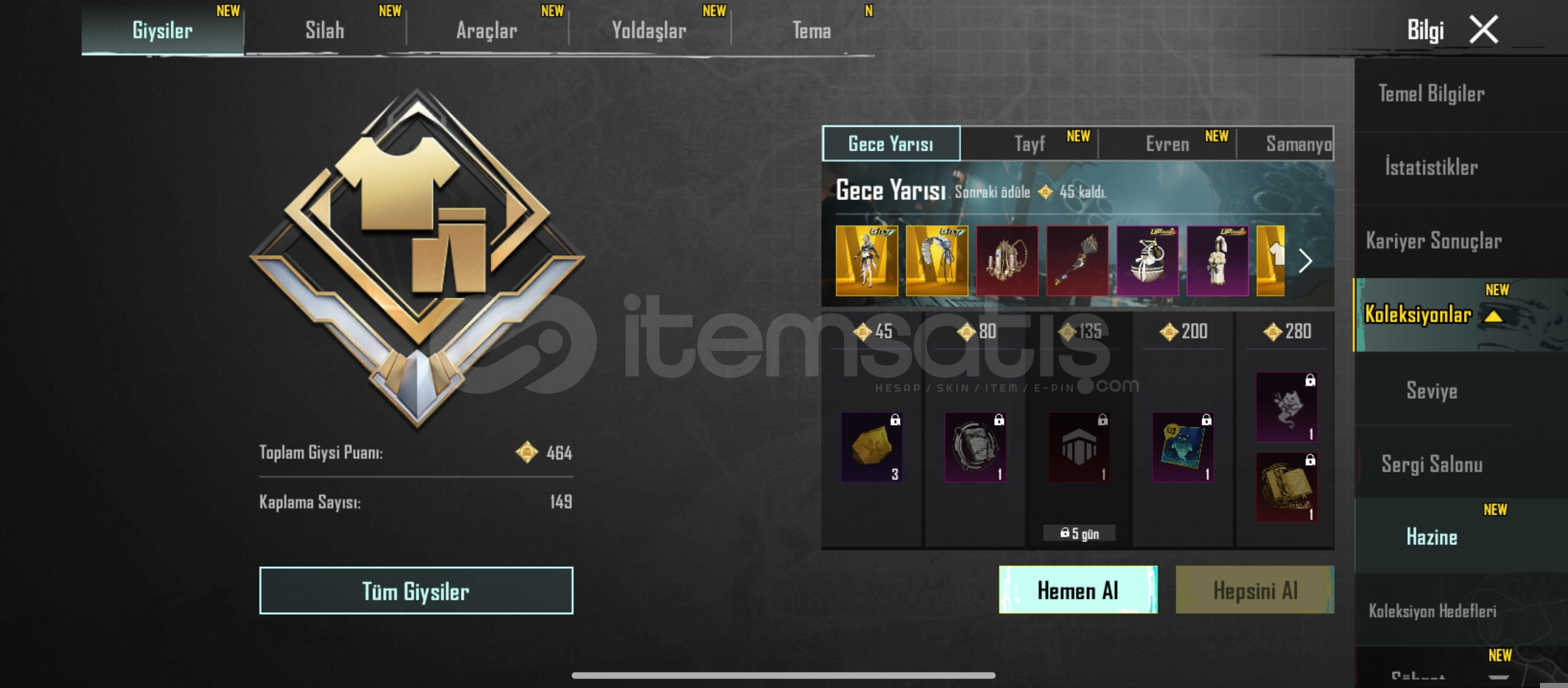 Hesapta bulunan kıyafetler silahlar ve merak ettiğiniz coğu şeye ID den bakabilirsiniz en altta bırakıyorum