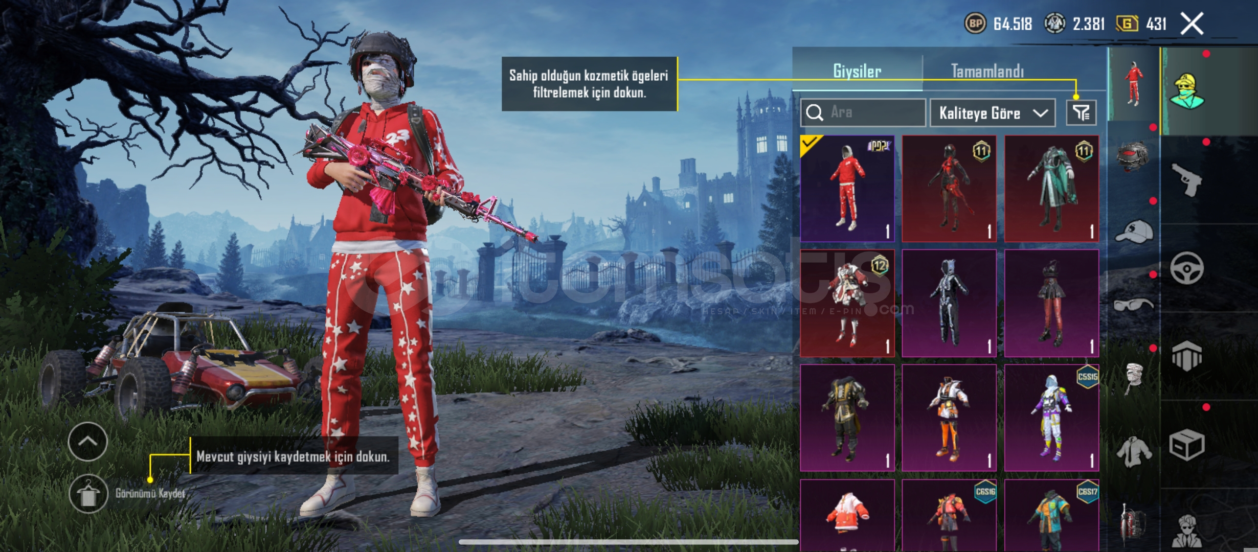 Hesapta bulunan kıyafetler silahlar ve merak ettiğiniz coğu şeye ID den bakabilirsiniz en altta bırakıyorumHesapta mail bağlıdır ayrıca hesab tamamen güvenilirdir çalıntı değildir merak edebilceğiniz bazı şeyleri görsel olarak bırakıyorum bence baslangıc oyuncuları için bu fiyata güzel bir hesap şimdiden alana hayırlı olsun.. ID:51946555522