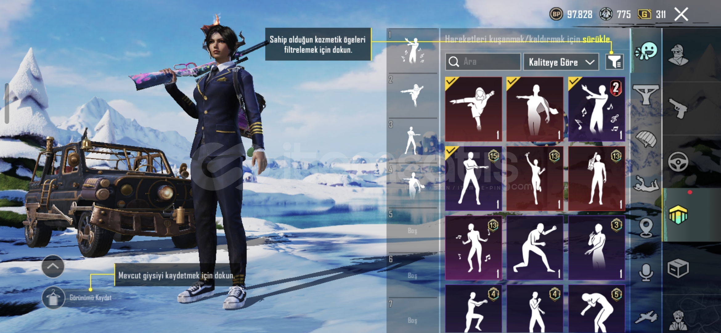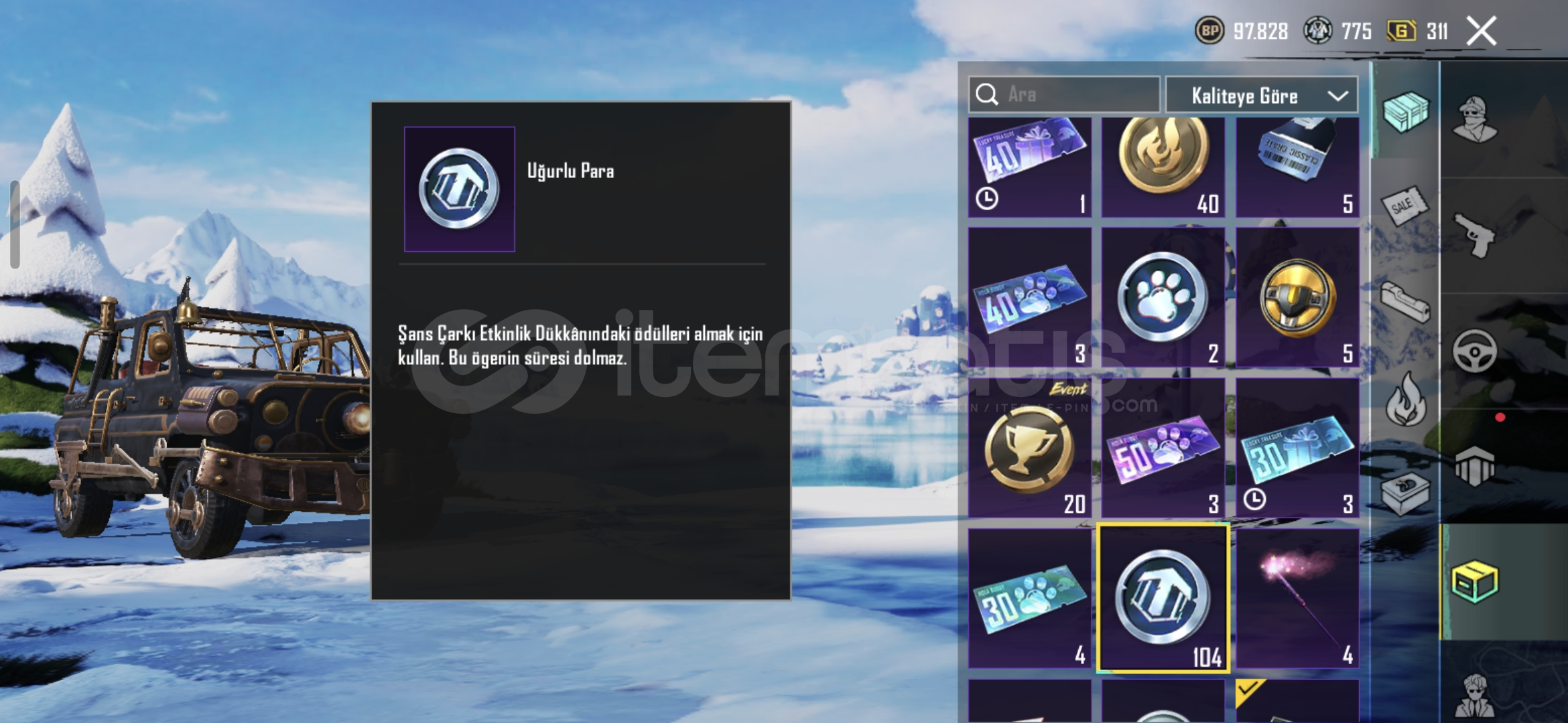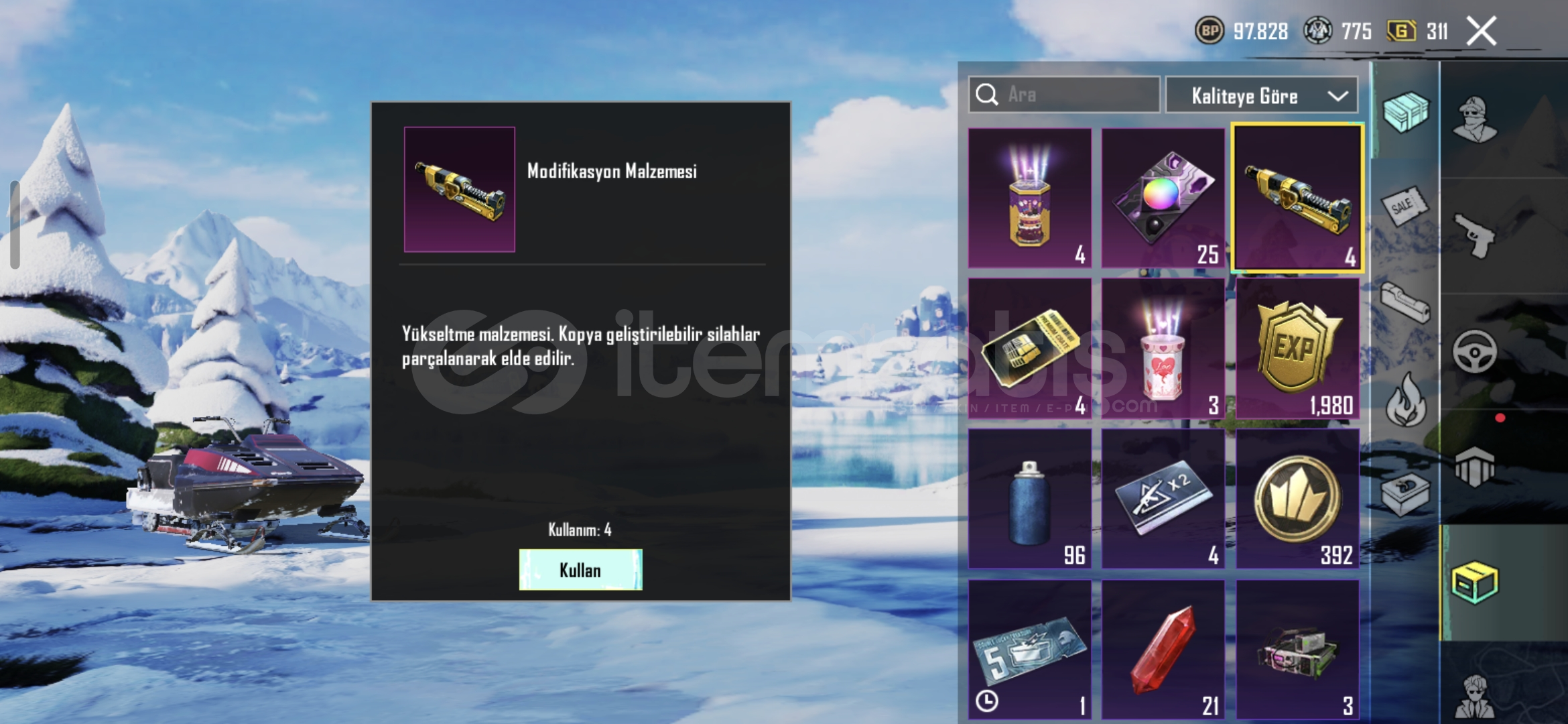 Hesapta sürüm emojisi 3 sv kar98 4 materyal,buz diyarı seti felan var.