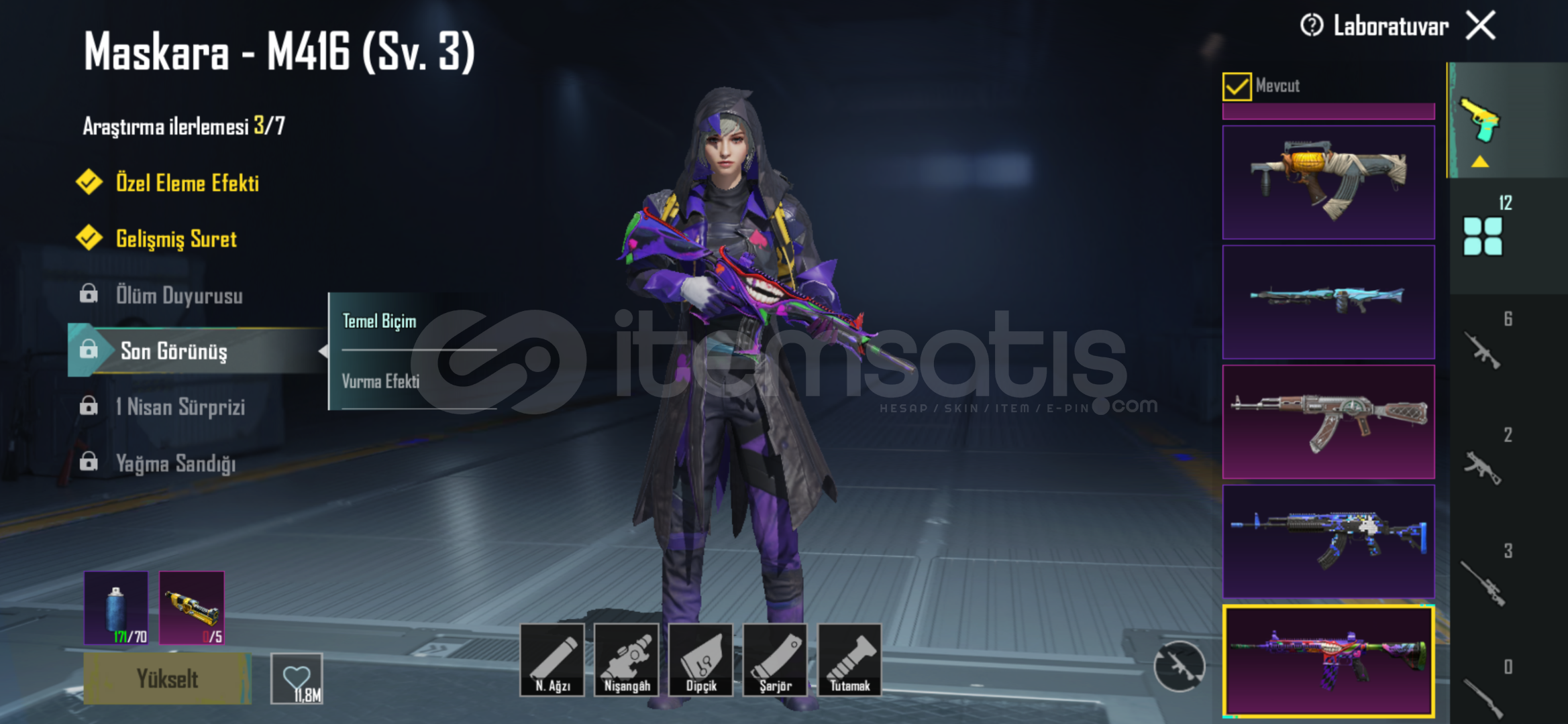 2 x suit 14 yükseltilebilir silah deseni hepsi 2 seviye üstü3 yükseltilebilir bomba deseni2 yükseltilebilir molotof desenimaskara seti fullemek dolu hesap
