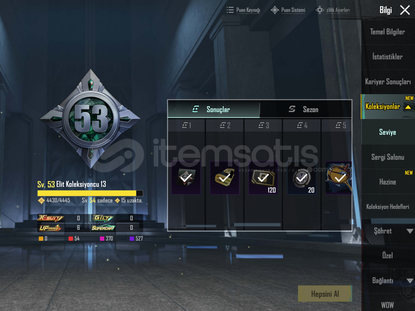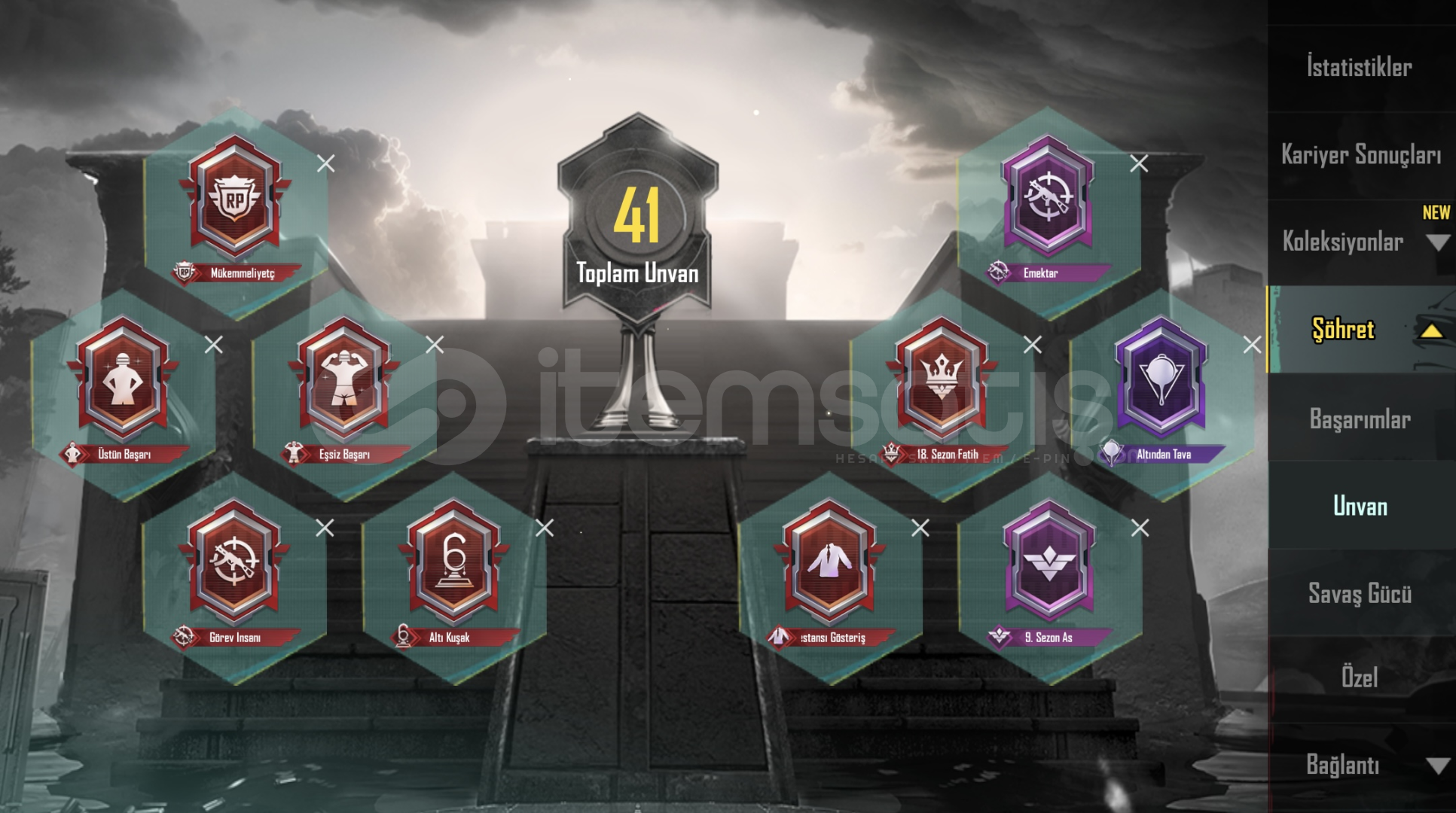 Eski sezon hesabıdır 18 •sezon fatih cercevesitüm baglar temiz ve değişeme acıkpopülerlik birikimi ve sandık kupon birikimi vardır6 yükseltilebilir vardır 3 tanesi ( ump , uzi , m24) öldürme mesajlıher silahta skin mevcuttur arabalar da dahildestansı gösteriş ünvanı vardır ve bir cok destansı ünvana sahiptiremek hesaptır alıcısına hayırlı olsun.
