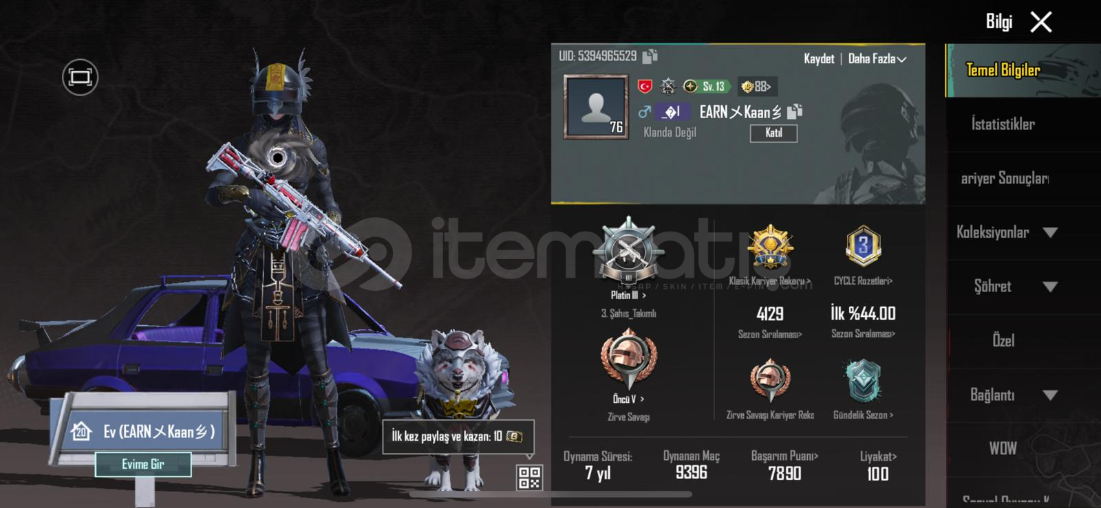 Tüm bağlar değişir/devredilir.Hesap eskidir.Hesapta Anukhra ve Yanardöner X Suit vardır.( Hesap id:5394965529) Sezon 5 hesabıdır.