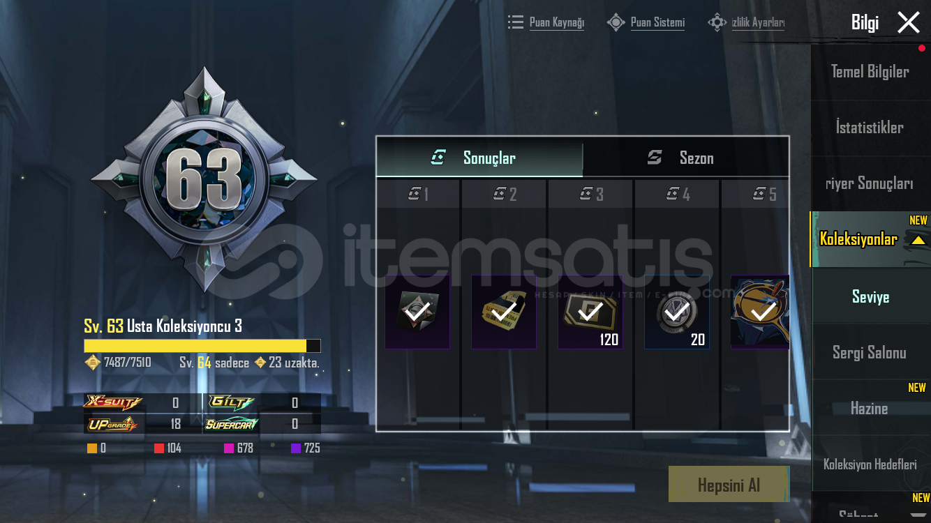 Hesabın 63 koleksıyon 104 destansı 8 yıllık 18 yükseltilebilir 6 tane ölüm duyurusu olup bir çok kombinlik kıyafetler vardır pazarlık payı vardır alım sonrası sorumluluk sıze aıtdir sımdıdıden alana hayırlı olsun