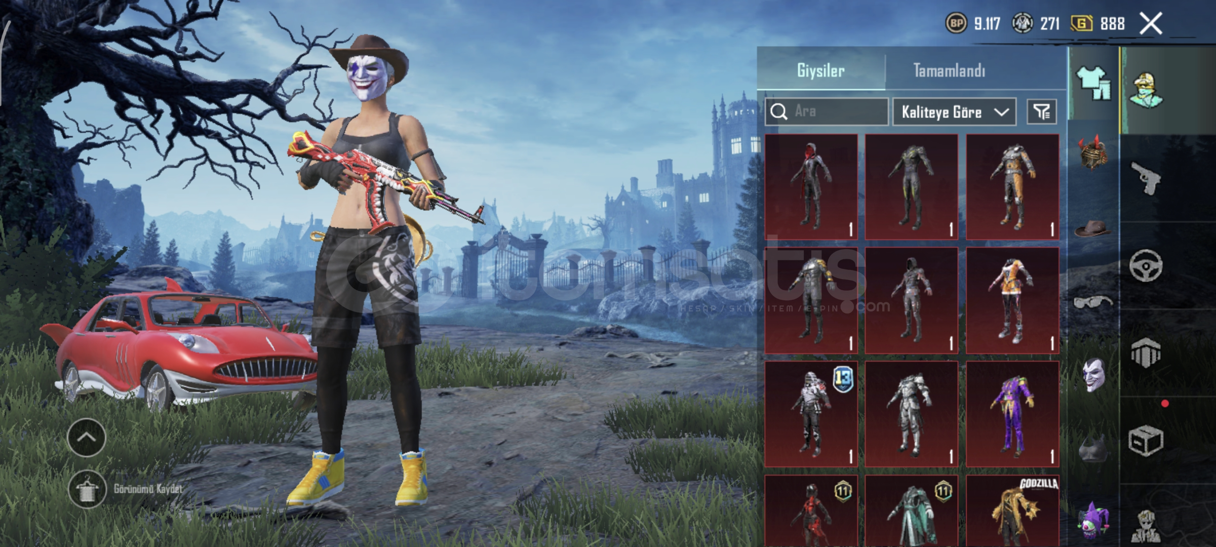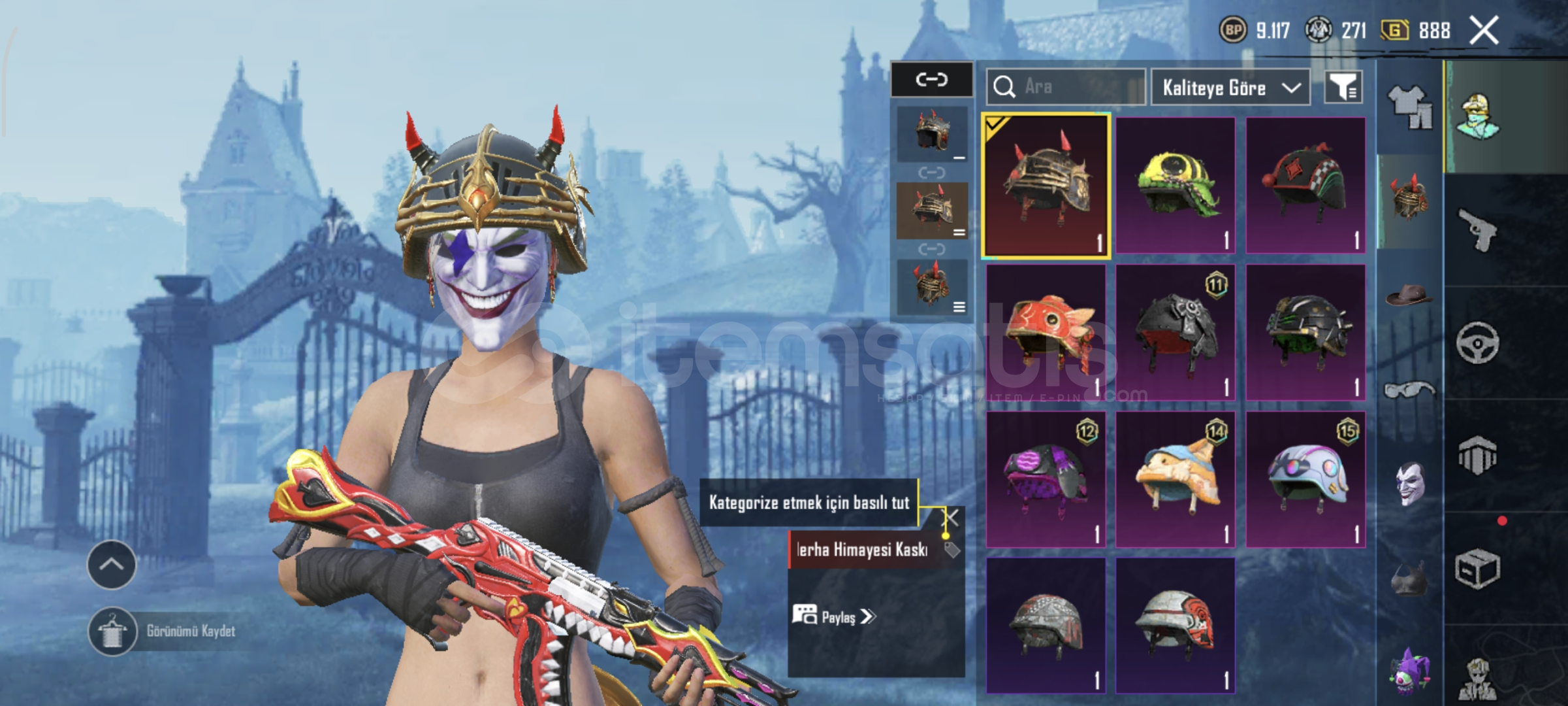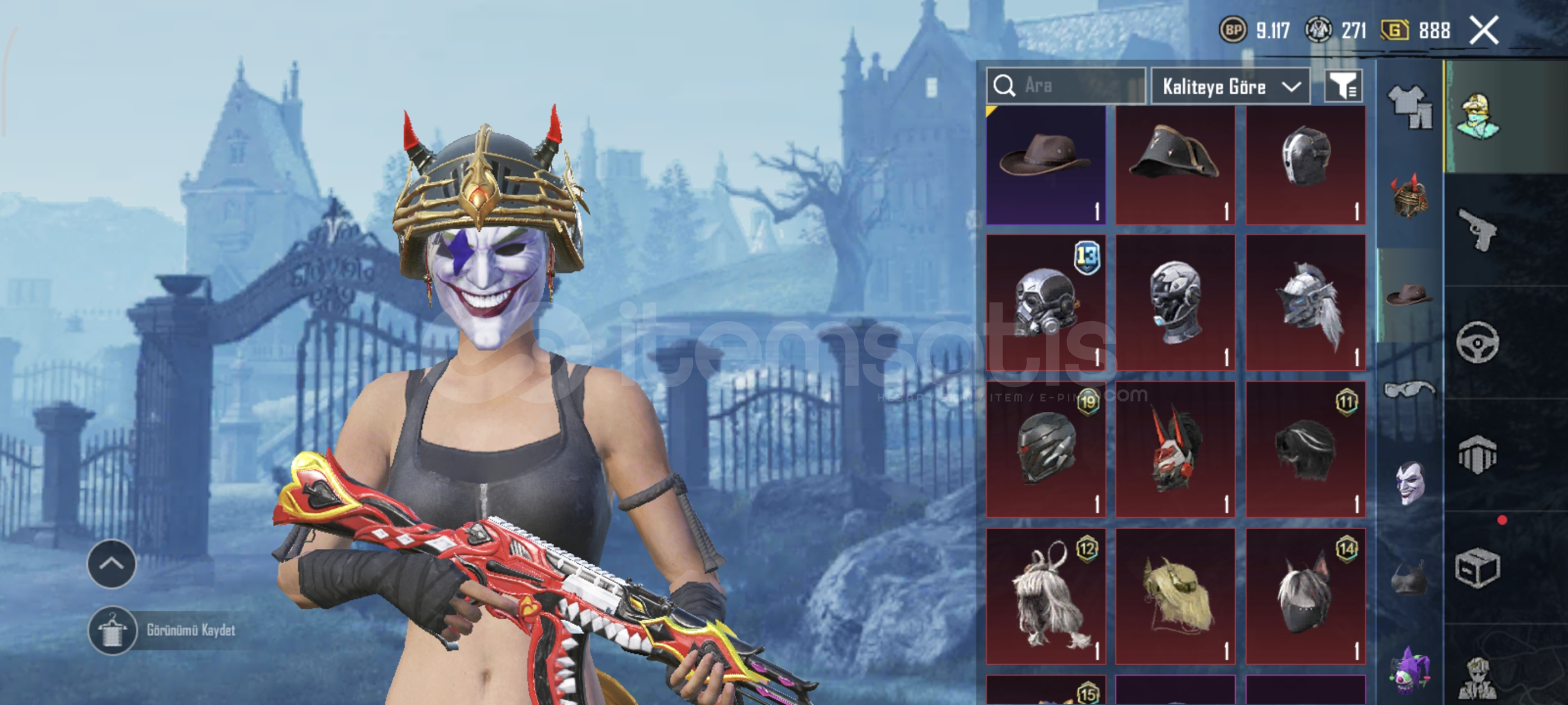31 Destansı 12 yükseltilebilir Seri katil setiAmansız suikastçı setiGalaktik kostüm setiİşgalci seti Çelik asker kostümü Ritmin efendisi seti Komutan full setAnanas full setMaskara maskesiŞekerli hortlak mp7 1svMama tabancasi scar-L 3svYamali tavşan mk47 2svDikenli şafak m16A4 1svÇığlıklar sirki arbalet 1svYükselen ejderha Mg3 3svMükâfat Tava 1svYaldızlı yeşim ejderha dp...