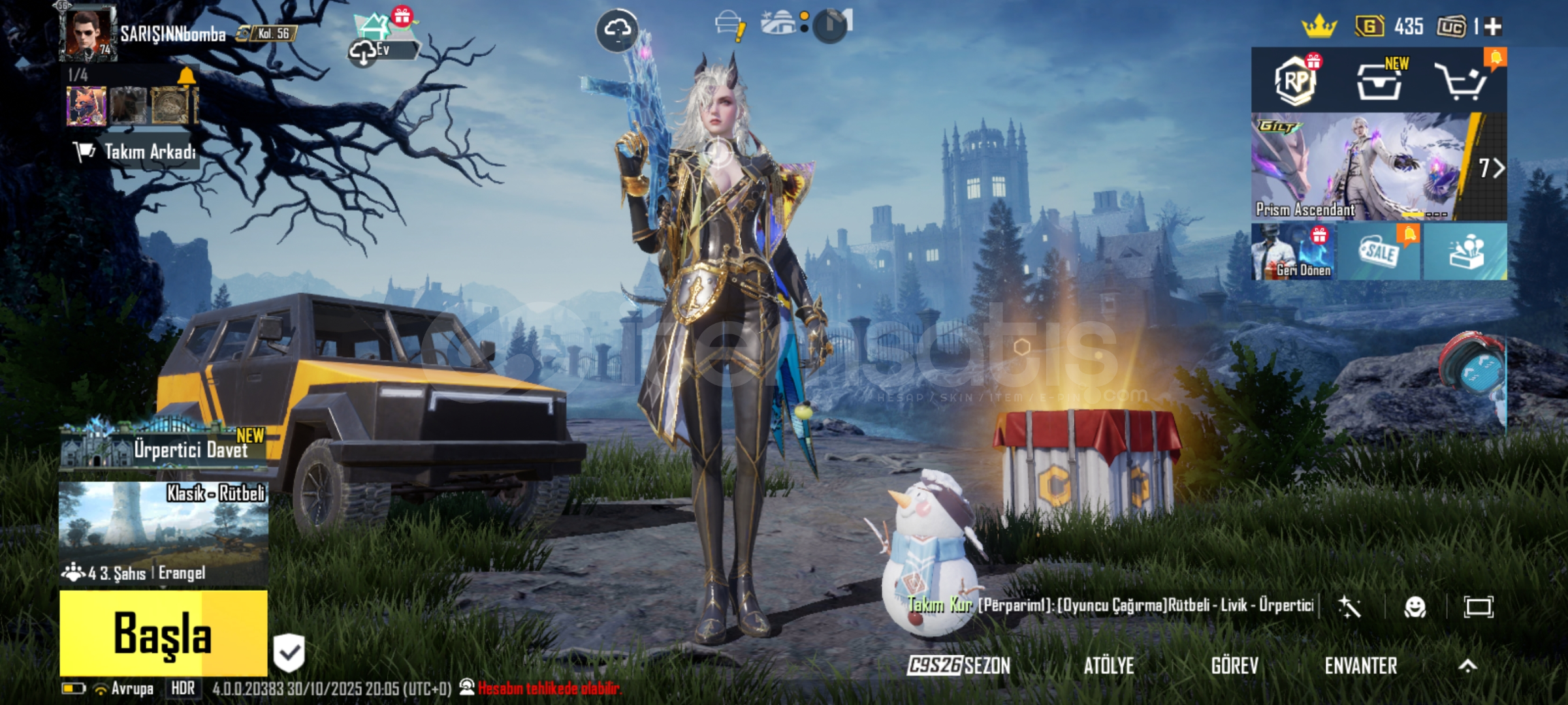 +FIRSAT HESABIDIR+75 DESTANSİ MEVCUTTUR+BİRÇOK DEĞERLİ SET VE ESKİ SEZON SETLER MEVCUTTUR BİRCOK ESKİ SEZON SAÇI BULUNUR!+YENİ GELEN DRAGON X SUİT BULUNUR+29 ADET YÜKSELTİLEBİLİR SİLAH BULUNUR+ONLARCA DESTANSİ EMOJİ BULUNUR+TUM ARABARDA SKİN MEVCUTTUR+CİFT BAG VARDİR ÖLÜ BAĞ Yoktur.+(51444022927) Hesap İD