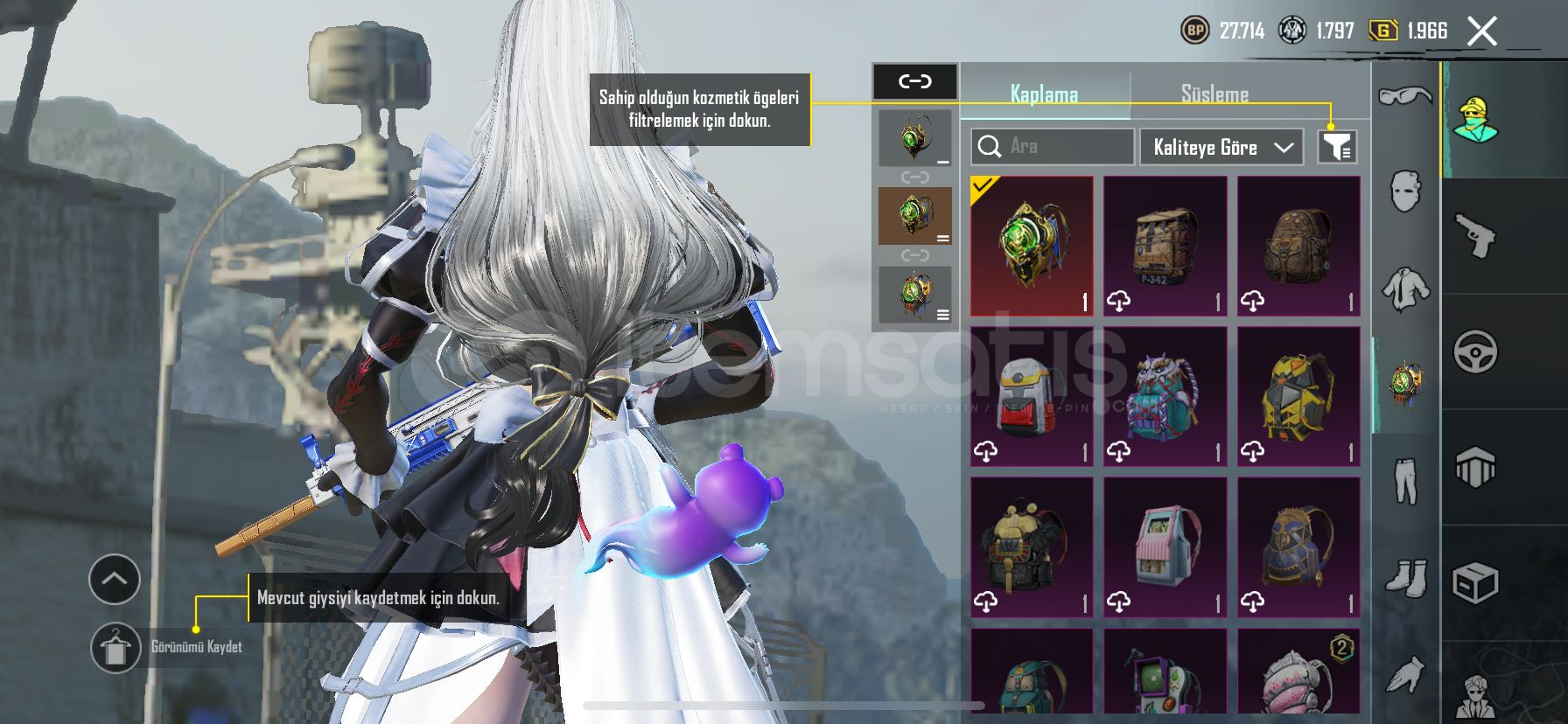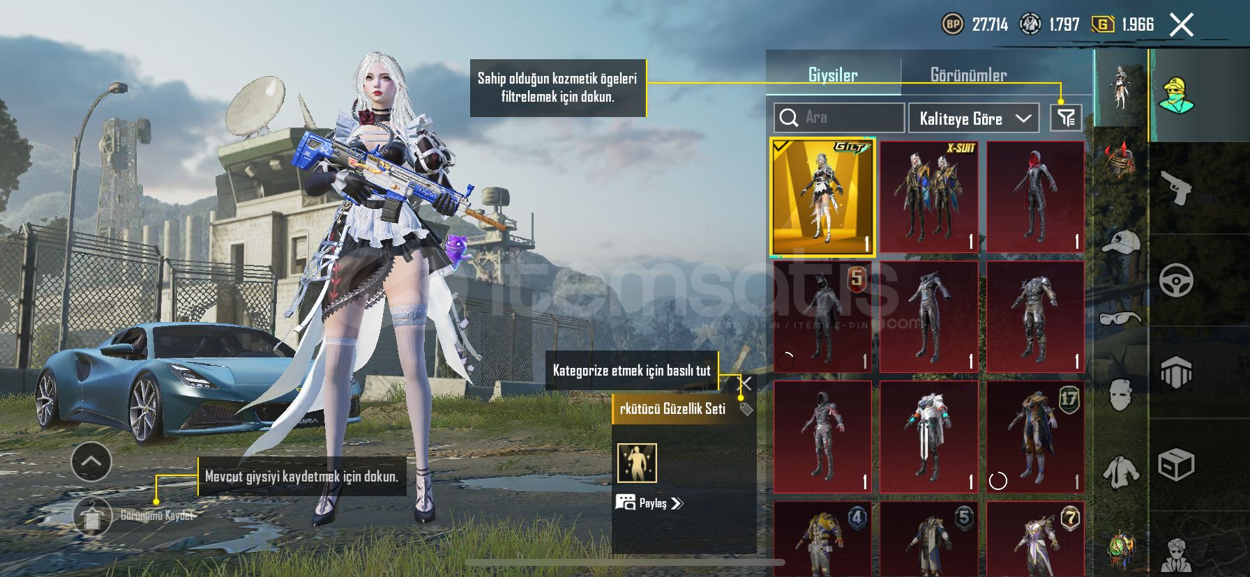 Açıklama:Bu Hesabı 5000 Tl ye katıyorum siz fiyat verin hesap bomba hesap dolu dolu 61 destansı nihayi set destansı çanta destansı kask xuit 2 level Dolu dolu ölüm mesajı Spor araba acil paraya ihtiyacım var diye satılık yeni alıcısına hayırlı olsun.
