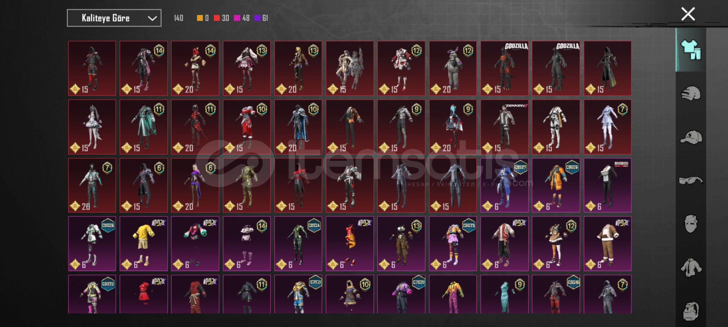 49 KOLEKSİYON67 SEVİYE56 GİZEMLİ18 YÜKSELTİLEBİLİR SİLAH (COGU YUKARI SEVİYE)KÖPEK BALIĞI USTU VE BENZER KIYAFET LERNADİR USTLER VARDİRS5 SAÇI FALAN VARDİRID 51933778882
