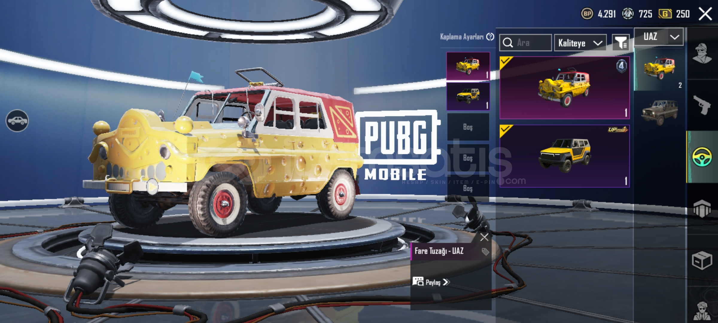 PUBG Mobile kategorisinde 15 gün adı altında satış yapılması kesinlikle kabul edilemez, gerçeği yansıtmayan ve doğruluğu olmayan bir işlem olduğu için yasaktır, tespiti durumunda lütfen bize bildiriniz.