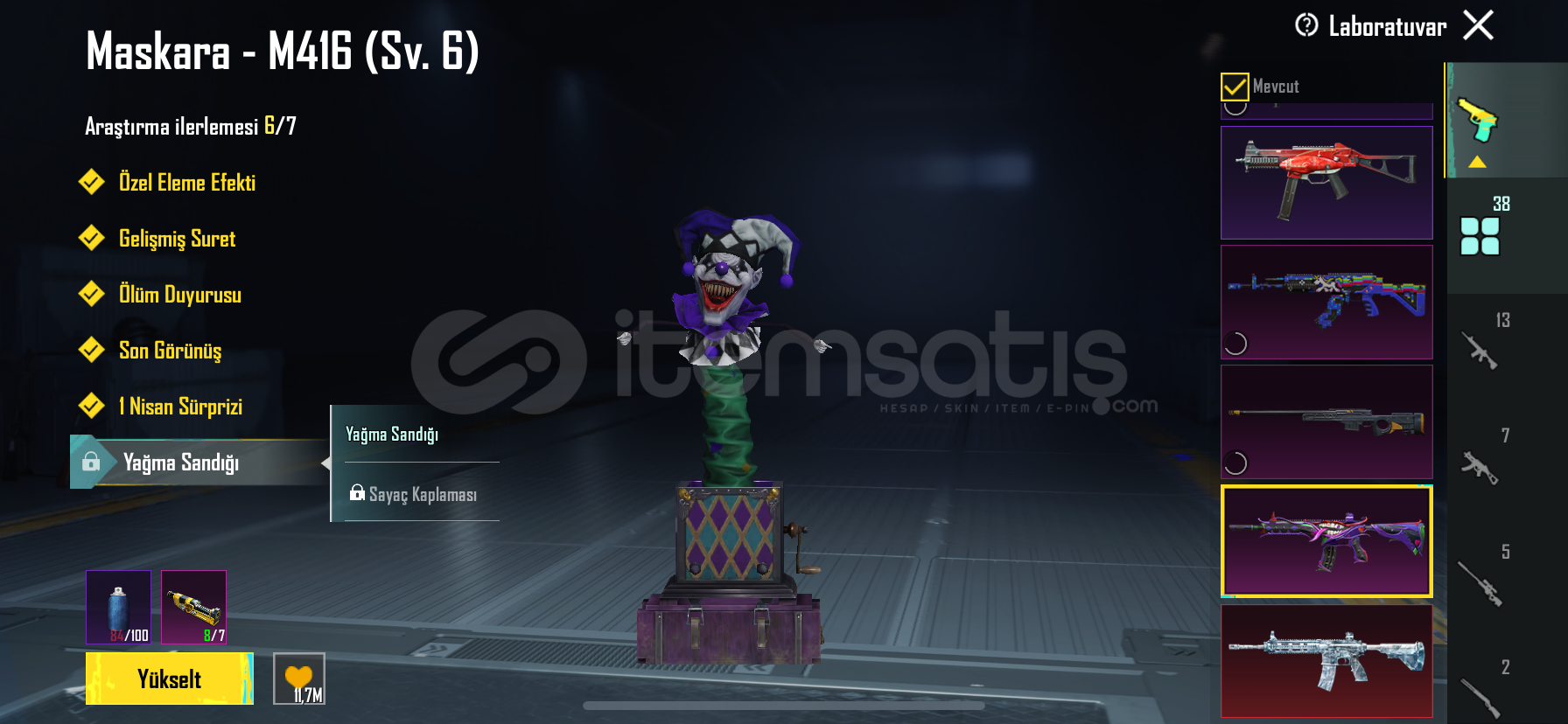 Hesabım Emek Hesabıdır Artık Oyunu Birakcagimdan Dolayı Satisa Çıkarmış Bulunmaktayım.Hesap İçeriği :116 Destansı ✅3 Nihai Set ✅2 X-Suit ✅3 Spor Araba ✅21 Özel emoji ✅38 Yükseltilebilir Silah ✅ 9 Ölüm Duyurulu Silah ✅Buz M4 Max✅ Maskara M4 Max ✅4tane Materyal ✅ 3 tane Destansı Amblem ✅Firavun Çantası ✅...