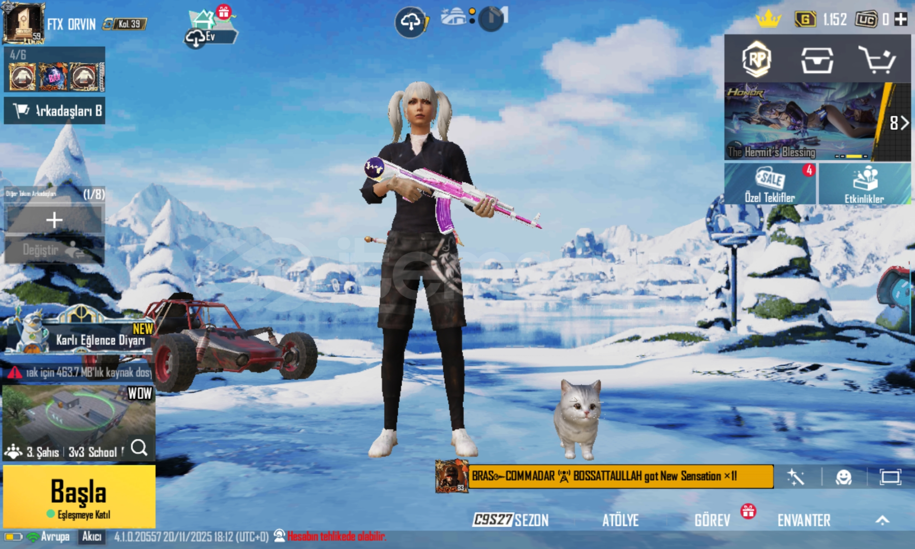 Bu fiyata bulamazsın Play Store hesabı silinecek sadece telefon numarası olarak sizin üstünüze yapılacak hesap fiyatına göre uygun kombin hesabı saç vardır ve AKM sürüm vardır çoğu silah 2 seviye ve toplam 9 seviye yükseltilebilir silah vardır PAZARLIK OLUR. Hesap İd:51876381862