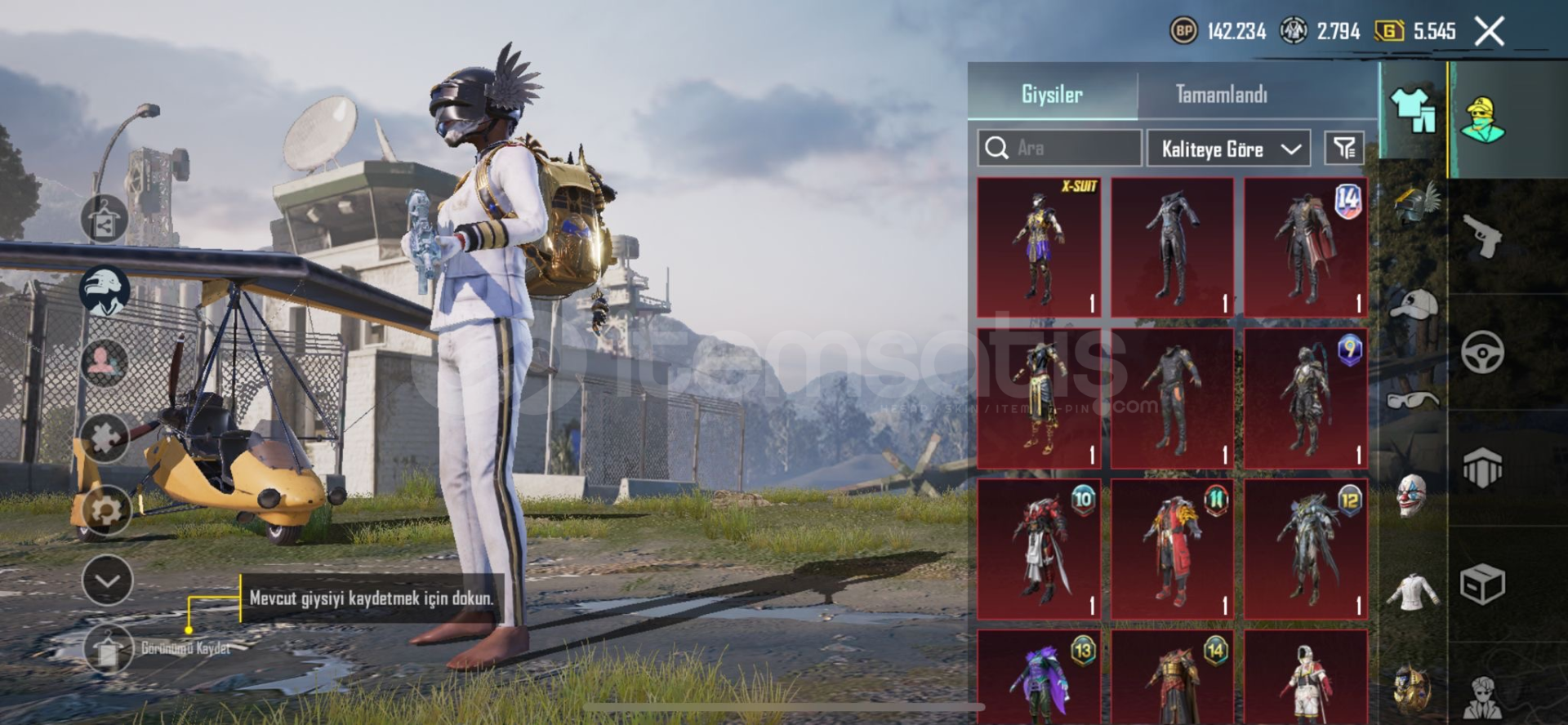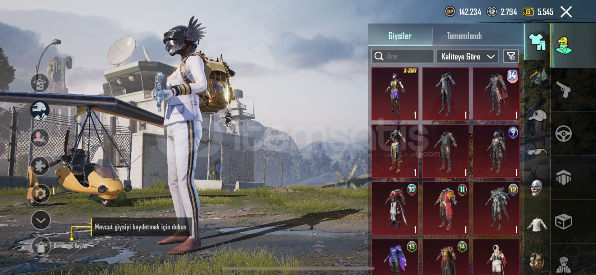 şöyle hesapta komutan seti var bir de o tişört de var üstünde Firavun çantası var firavunun kendisi var iki seviye Löbiye giriş animasyonlu firavun paraşütü var firavun yanındaki kıyafet var bir tane vardı o kıyafet var ya daha sonra planör var 2-3 tane destansı planör ve bir tanesi var böyle buzdan mezar bir planör daha sonra m416 buz diyarı dört seviye m762 küçük Midilli dört seviye bir tane m16 var o da üç seviye ölüm duyurusu açık RP silahı S 12 k var o da dört seviye ölüm duyurusu bir adet Uzi var o da RP silahı üç seviye ölüm duyurusu açık bir tane Scar L var o da RP silahı üç seviye bir tane 1024 var daha yükseltmemişim onu ump de var o da iki seviye miydi üç seviye miydi öyle bir şeydi bir de katil bal kabağı Groza dört seviye oda bir tane M249 var hangisi olduğunu zaten tahmin ediyorsun o güzel bir tane vardı zaten ekran görüntüsün de atmıştım
