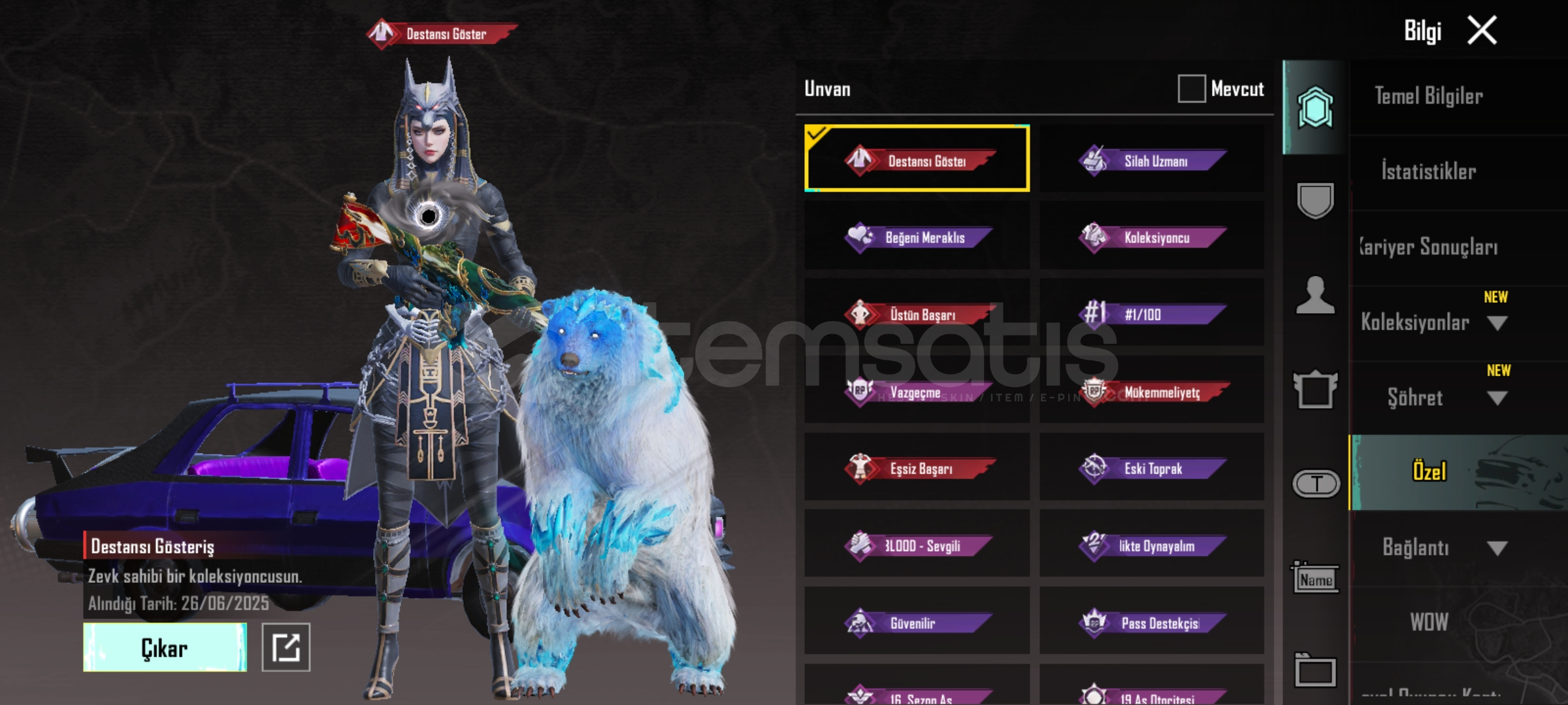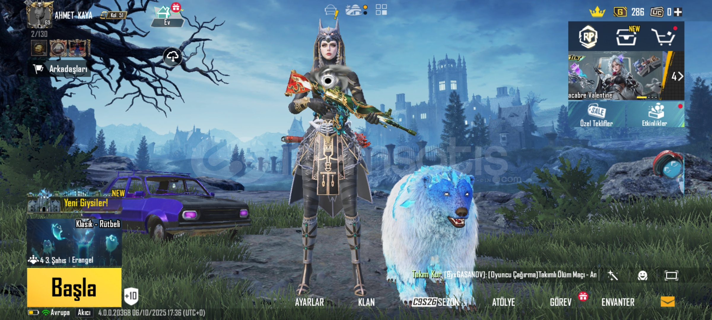 Hesap 11 sezon hesabıdır 50 destansı 15 yükseltilebilir silah var. Yakan kükreme m416 6 yükseltilebilir araç alıcısına hayırlı olsun.