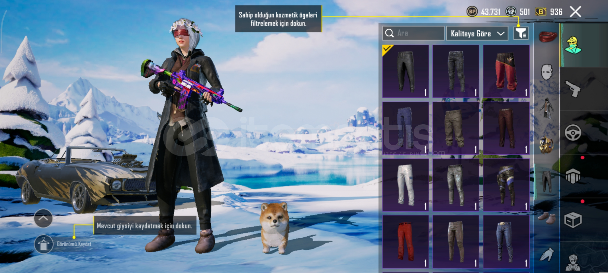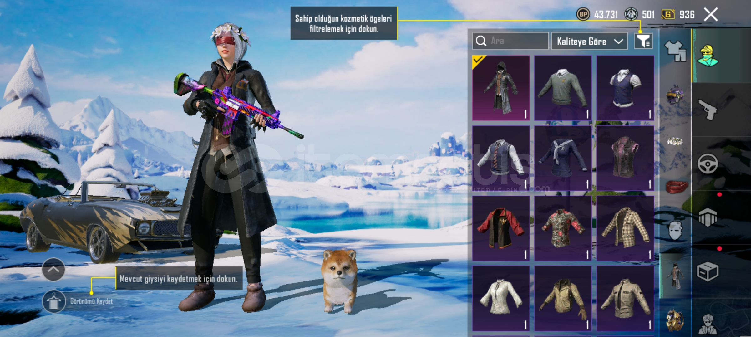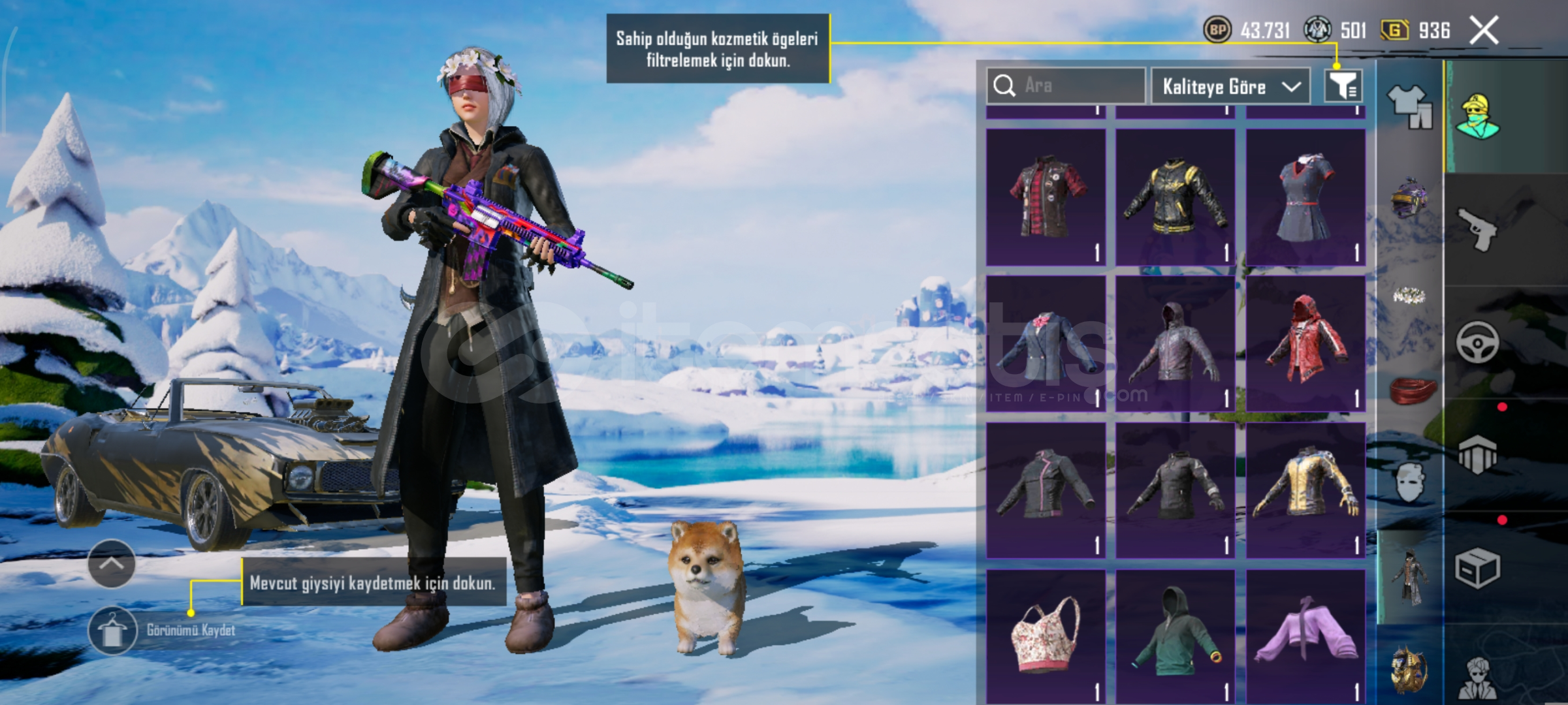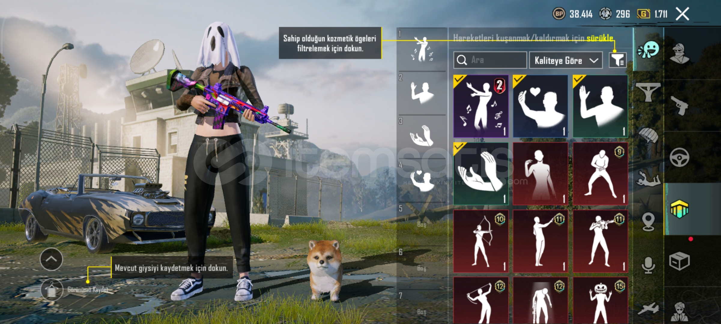 Maskara m416 (4sv)Firavun çantasıBağlar temizGoogle direk devir edilicekZırhlı avcı mirado2 adet amblem1.5 mataryelS4 saç ilk olanGöz bandıFiyat SONDUR