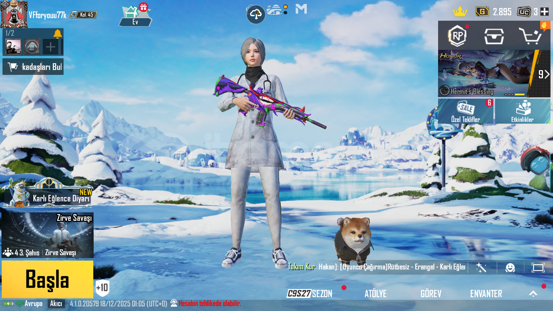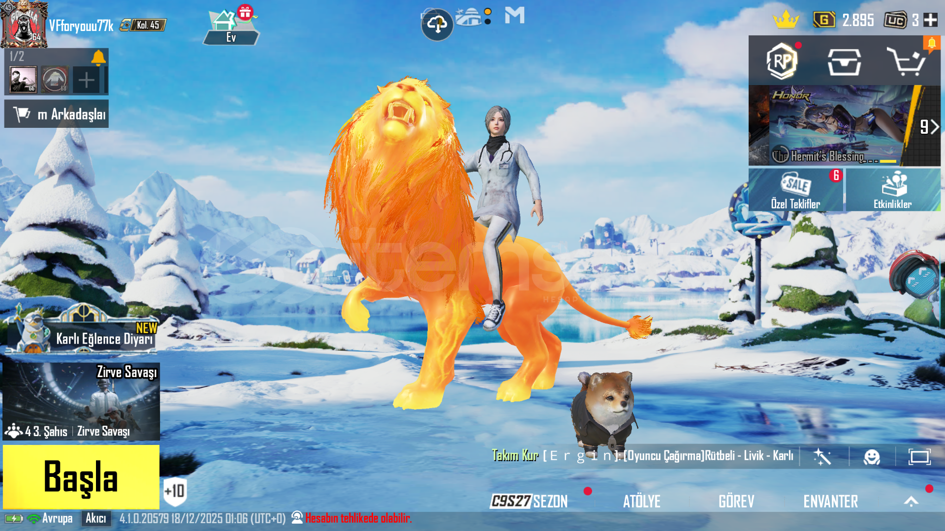 Maskara SetiKor Alev X SuitOptimus PrimeBumblebeeMaskara M416 4 SVY+Kahramanlık Ağıdı AWM!!!Arındırıcı AMRVe Birçok Yükseltilebilir Silah Mevcut64 SeviyeKomutan PantolonuHesapta birçok destansı emoji ve kombinlik birsürü malzeme vardır içinde toplam 20 30 günlük oda kartı var royale pass açık değil ama 90 seviyedehafif pazarlık olur alıcısına hayırlı...