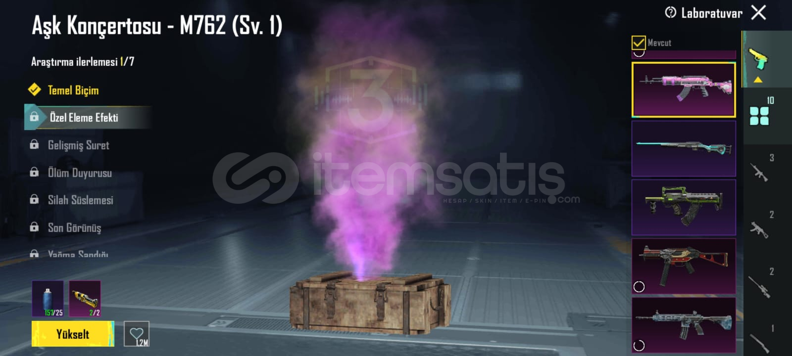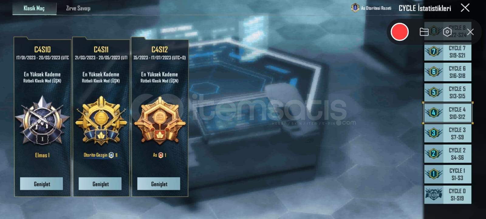 hesap 62 seviyedir .10 tane yükseltilebilir silah mevcuttur 2 seviye buz diyarı. 25 adet destansı kıyafet.toplam hesapta 397 adet kıyafet bulunmakatadır.94 adet silah kaplaması. 13 adet araç. 12 adet destansı dans . 15 adet bomba desenleri .23 adet oda kartı .25 adet x2 tp kartı . 48 adet x2 bp kartı ve ID dğiştirme kartı mevcuttur. 4. seviye popülerlikte . Uzun bi süredir pubg oynamıyorum ş...