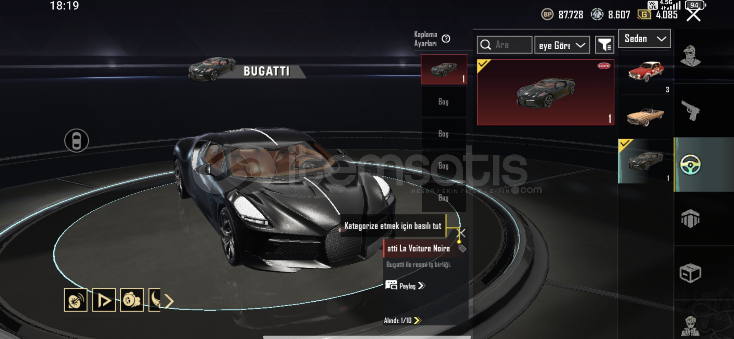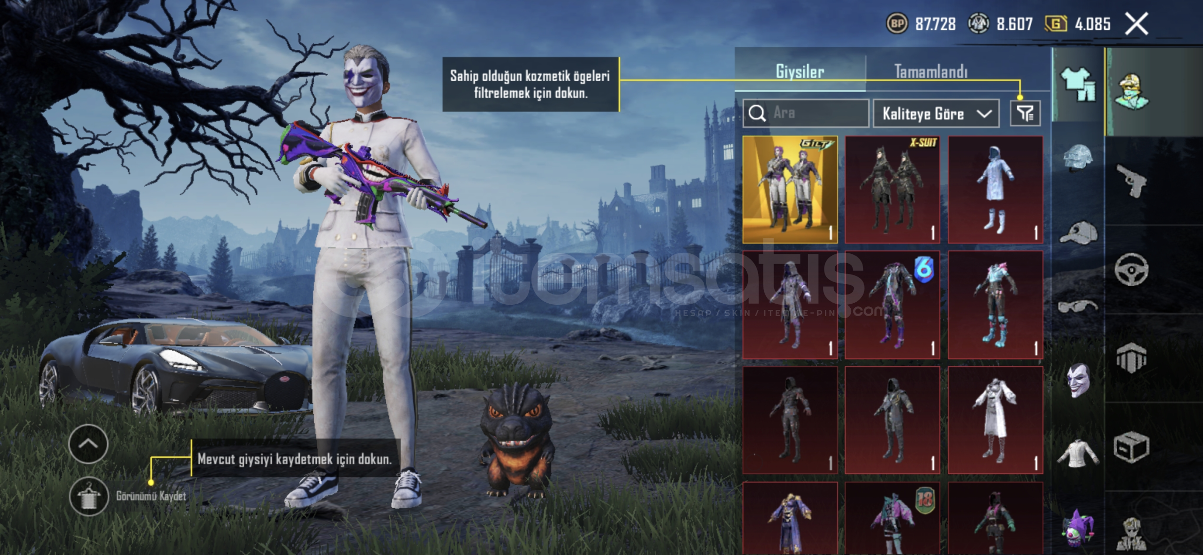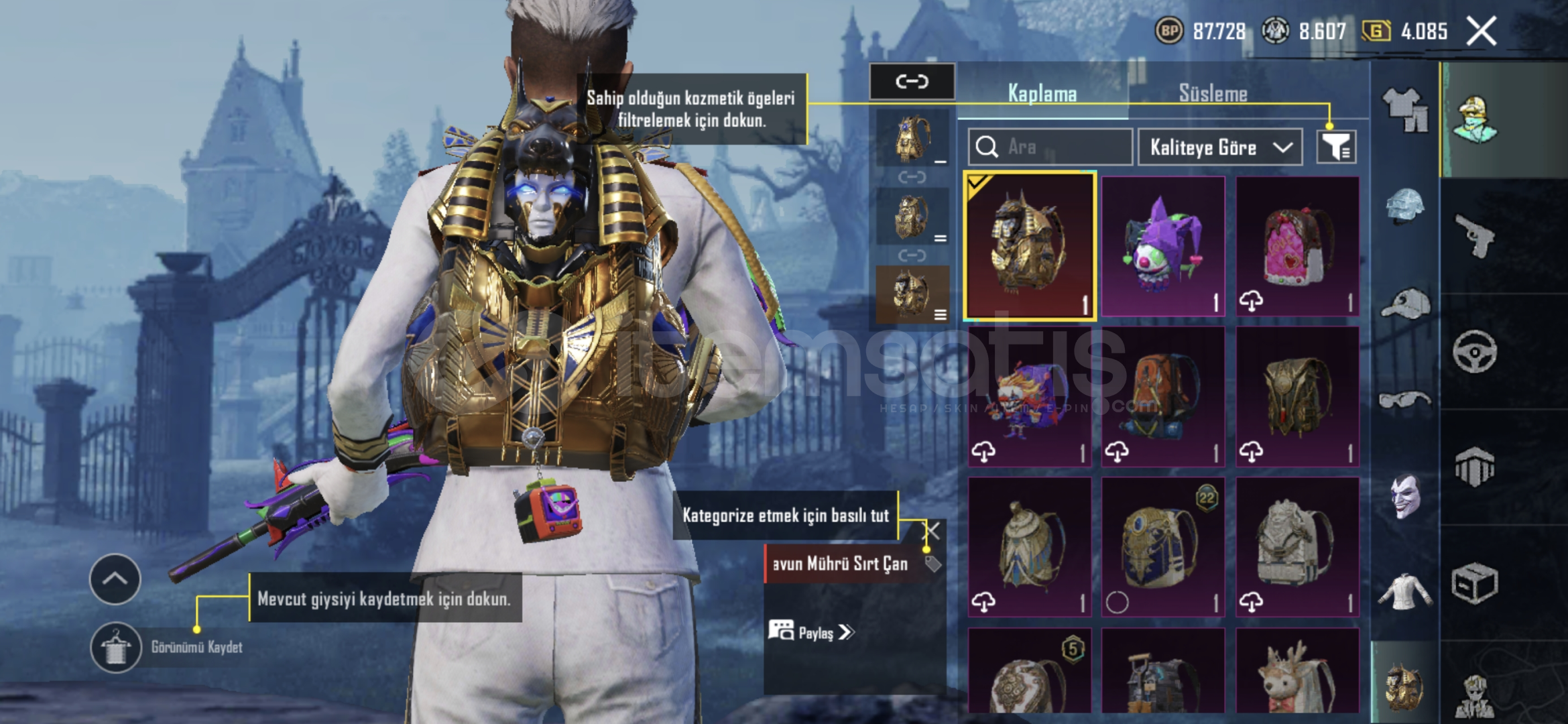 Selamlar,69 Destansı, 1 Nihai mevcutturBugatti La votiture noire mevcuttur.2 tane Dacia ve 1 Adet buggy Yükseltilebilir desen mevcuttur.Maskara seti ve yüzü mevcutturS4 Saç mevcutturKomutan full kombin mevcutturMaskara ve Firavun çantası mevcutturFiravun paraşütü mevcutturKombinlik giysiler mevcuttur...Godzilla yoldaş mevcutturGodzilla canavarlar uazı mevcutturDestansı ve önemli kıyafetler: Anukhra Zırh X 2 Seviy...
