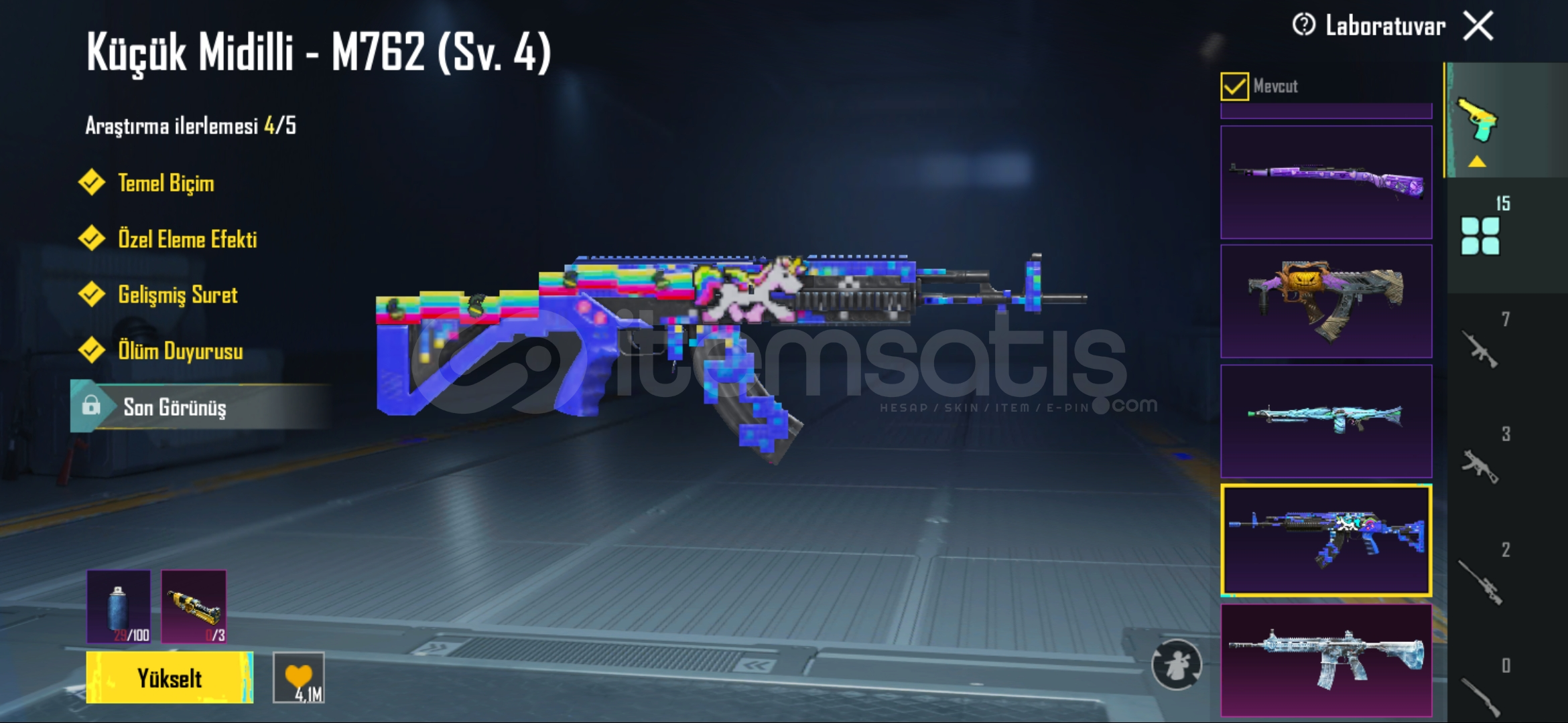 Buz m4 4Altın pençe p90 3Midilli m7 4Ejderha mg 3Balkabagi groza 3Siyah dodgeHesapta ekstra olarak 800 uc vardır