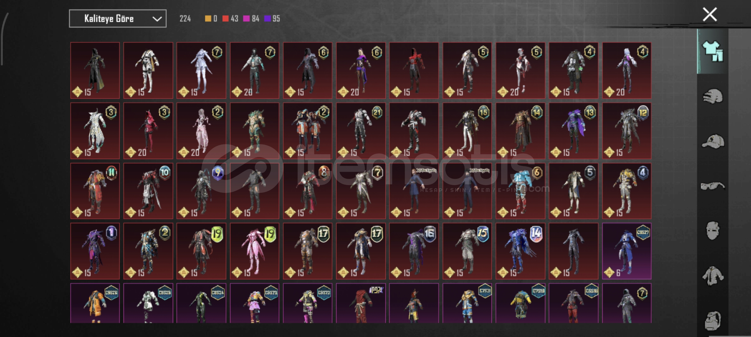•eski sezon hesaptır 75 adet destansı bulunmaktadır buz m416 4 seviye öldürme mesajlidir
