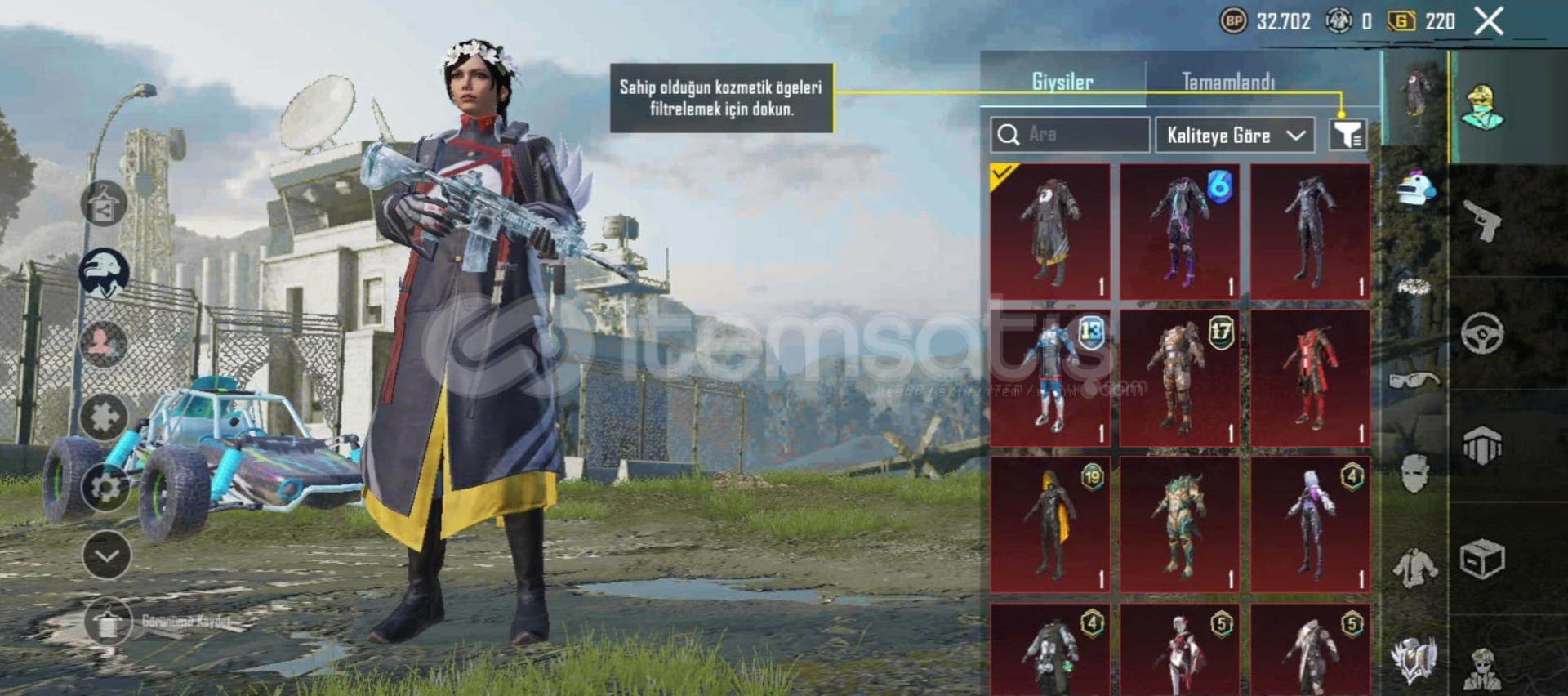 PAZARLIK ÇOK AZ MİKTARDA OLUR51 KOLEKSİYON43 DESTANSI16 YÜKSELTİLEBİLİR SİLAHC6S16 PUBG FATİHİC6S17 PUBG FATİHİ7445 BAŞARIM PUANIBUZ DİYARI M416 5 SEVİYEKÜÇÜK MİDİLLİ M762 4 SEVİYEARINDIRICI AMRATOM TETİK S12KKOD KIRICI AKMSÜRÜMCÜ EMOJİSİ VE BİRÇOK DESTANSI EMOJİKOR ALEV SIRT ÇANTASI(DESTANSI)MASKELİ MEDYUM CÜBBESİP...