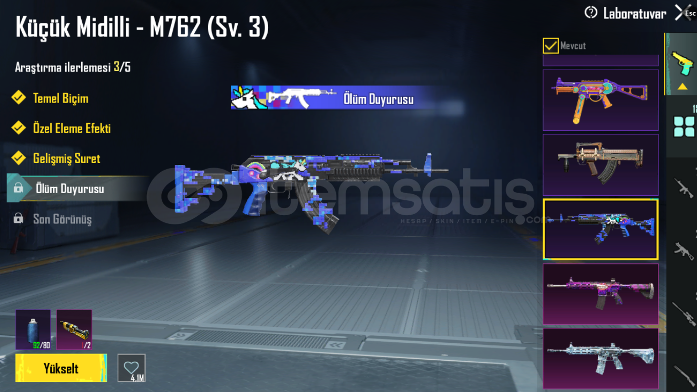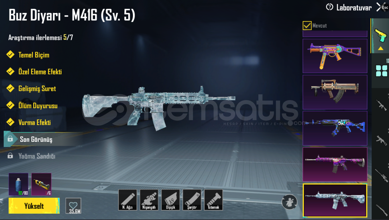 Hesapta seviyesi yükseltilmiş çok değerli silahlar mevcuttur: