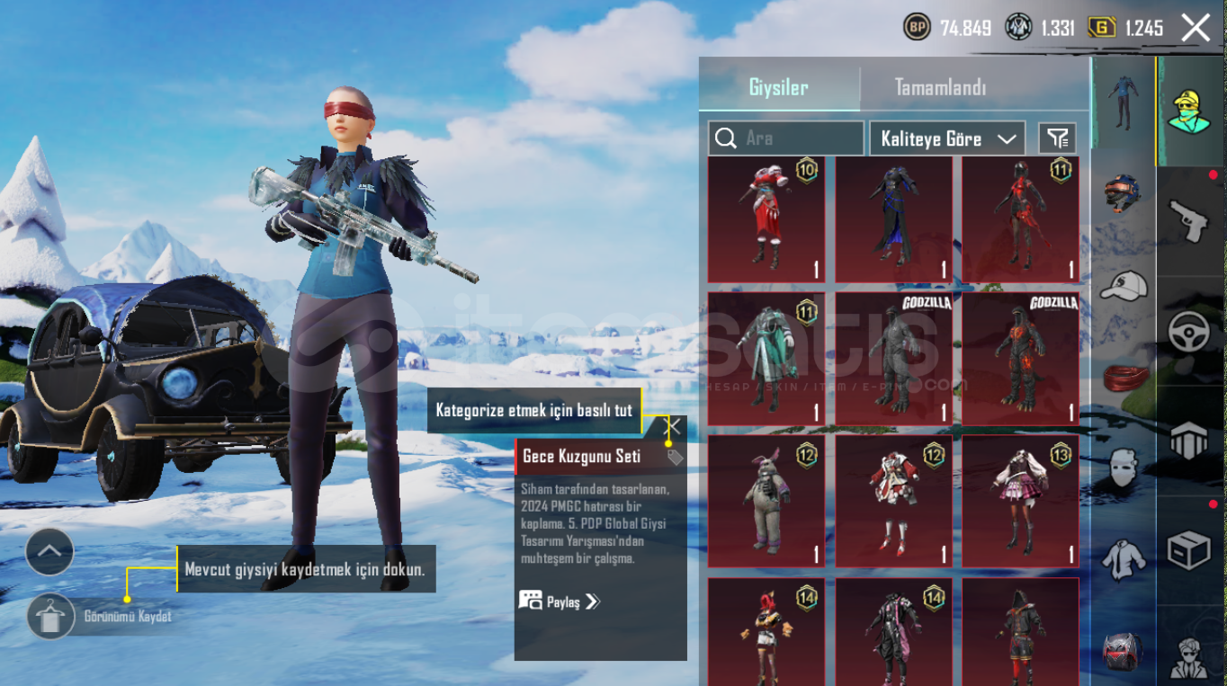 🔥 Yükseltilebilir SilahlarHesapta seviyesi yükseltilmiş çok değerli silahlar mevcuttur: • Buzdiyarı M416 – 5. Seviye • Maskara M416 – 2. Seviye • Küçük Midilli M762 – 3. Seviye • 8 Bitlik Patlama UMP45 – 3. Seviye • Çığlıklar Sirke Arbalet – Max Seviye • Ruhaniye Muhafaz Uzi – 2. Seviye • Tundra Şövalyesi Hançeri – 2. SeviyeT...